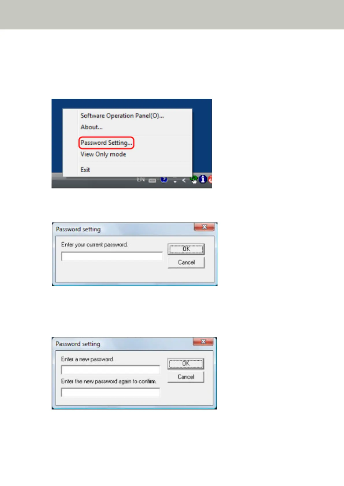 1 Right-click the Software Operation Panel icon on the taskbar, and select [Password Setting] from the