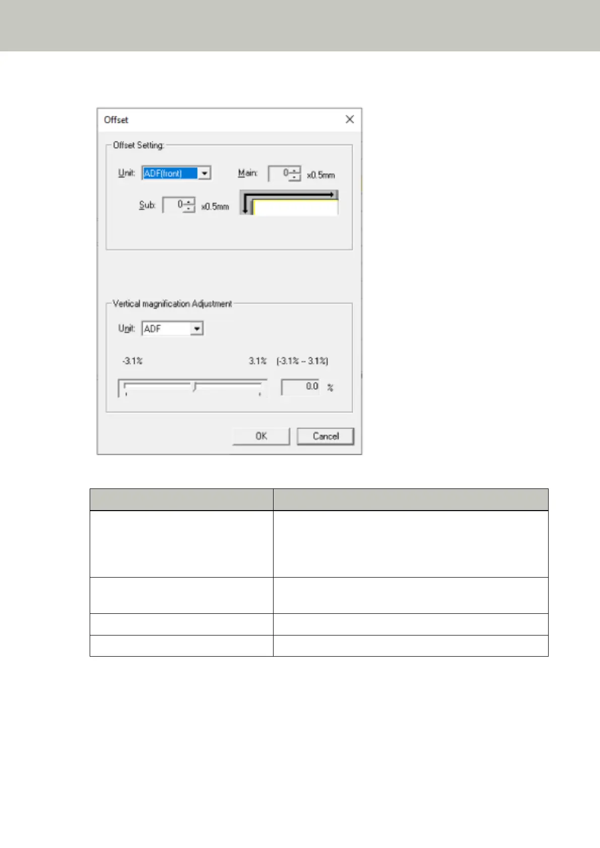 Offset Setting Specify a starting position for scanning.