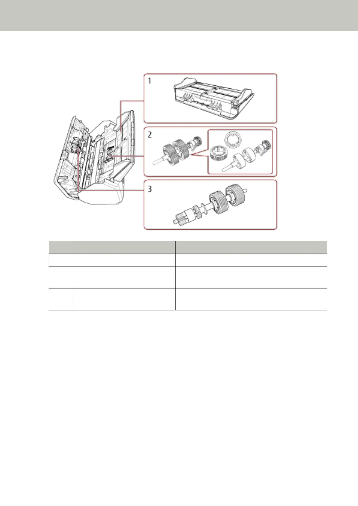 3 Brake roller A roller that prevents more than one sheet of documents to
