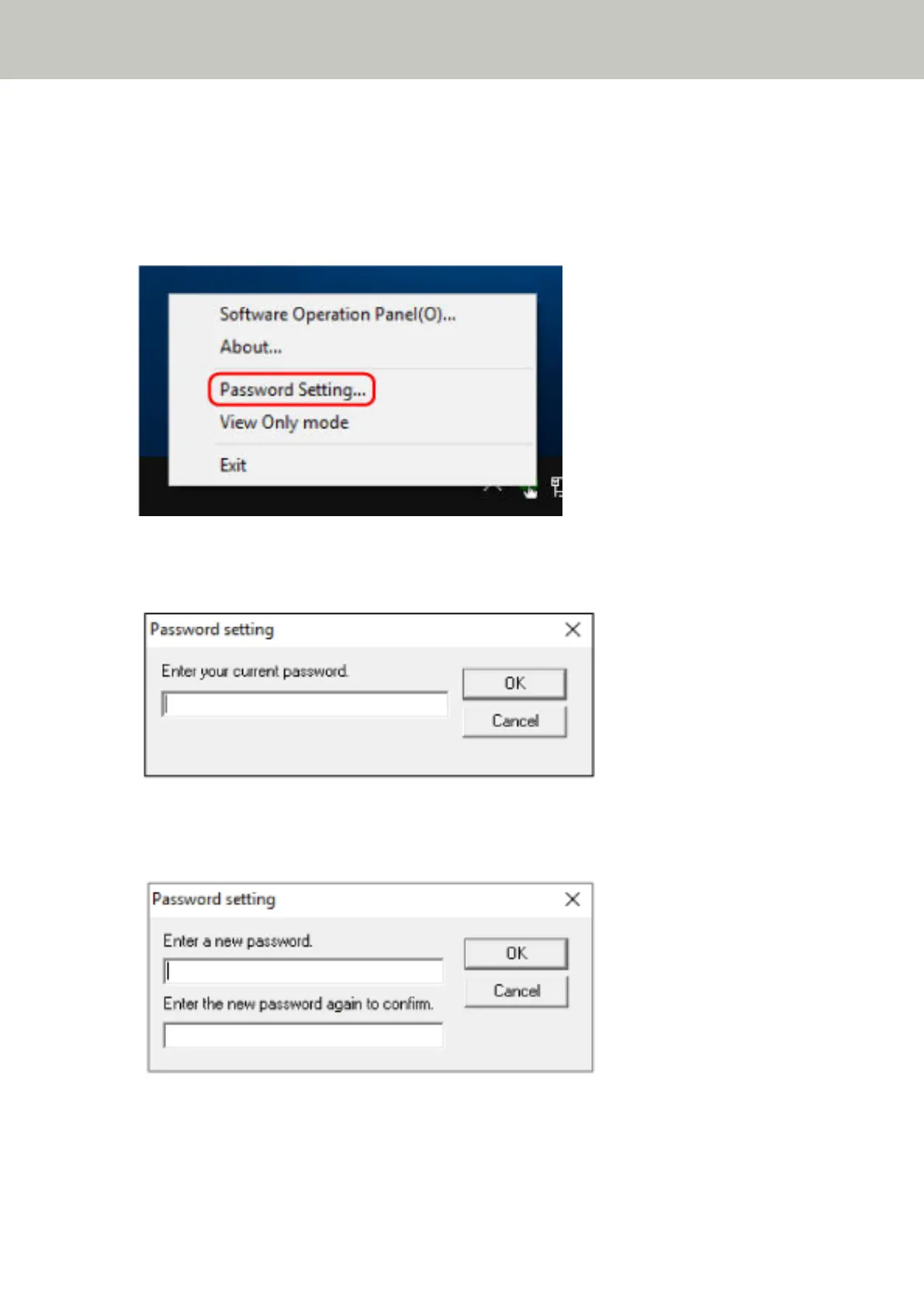 1 Right-click the Software Operation Panel icon in the notification area, and select [Password Setting]