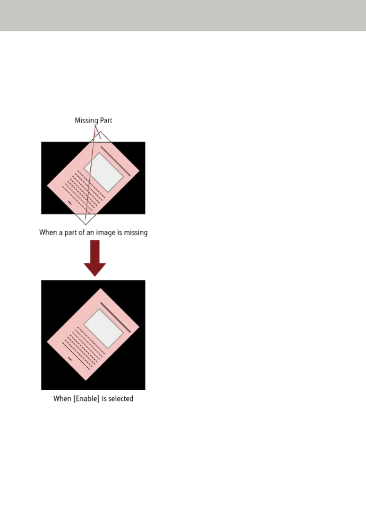 If you set [Enable] for [Overscan Control], when documents are fed skewed, the scanning area is automatically