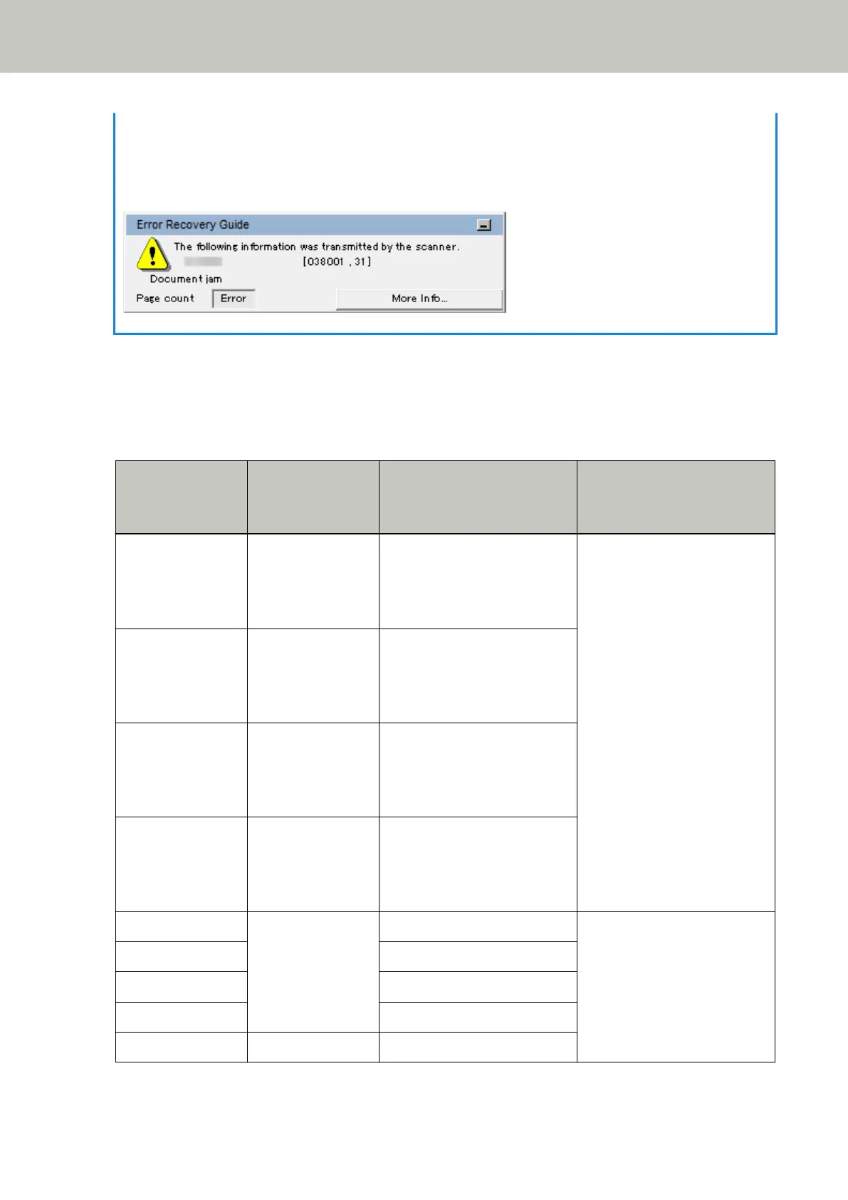 When an error occurs on the scanner, the error name and code number is displayed in the Error Recovery