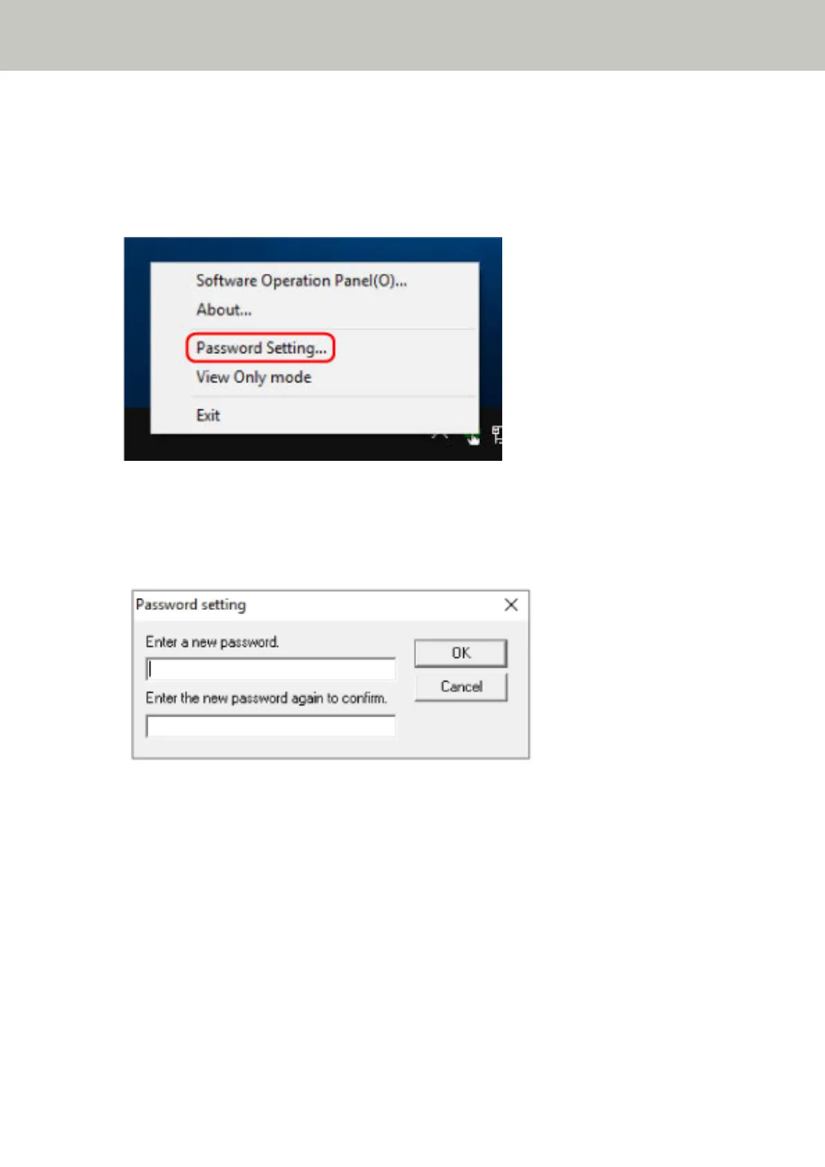 1 Right-click the Software Operation Panel icon in the notification area, and select [Password Setting]
