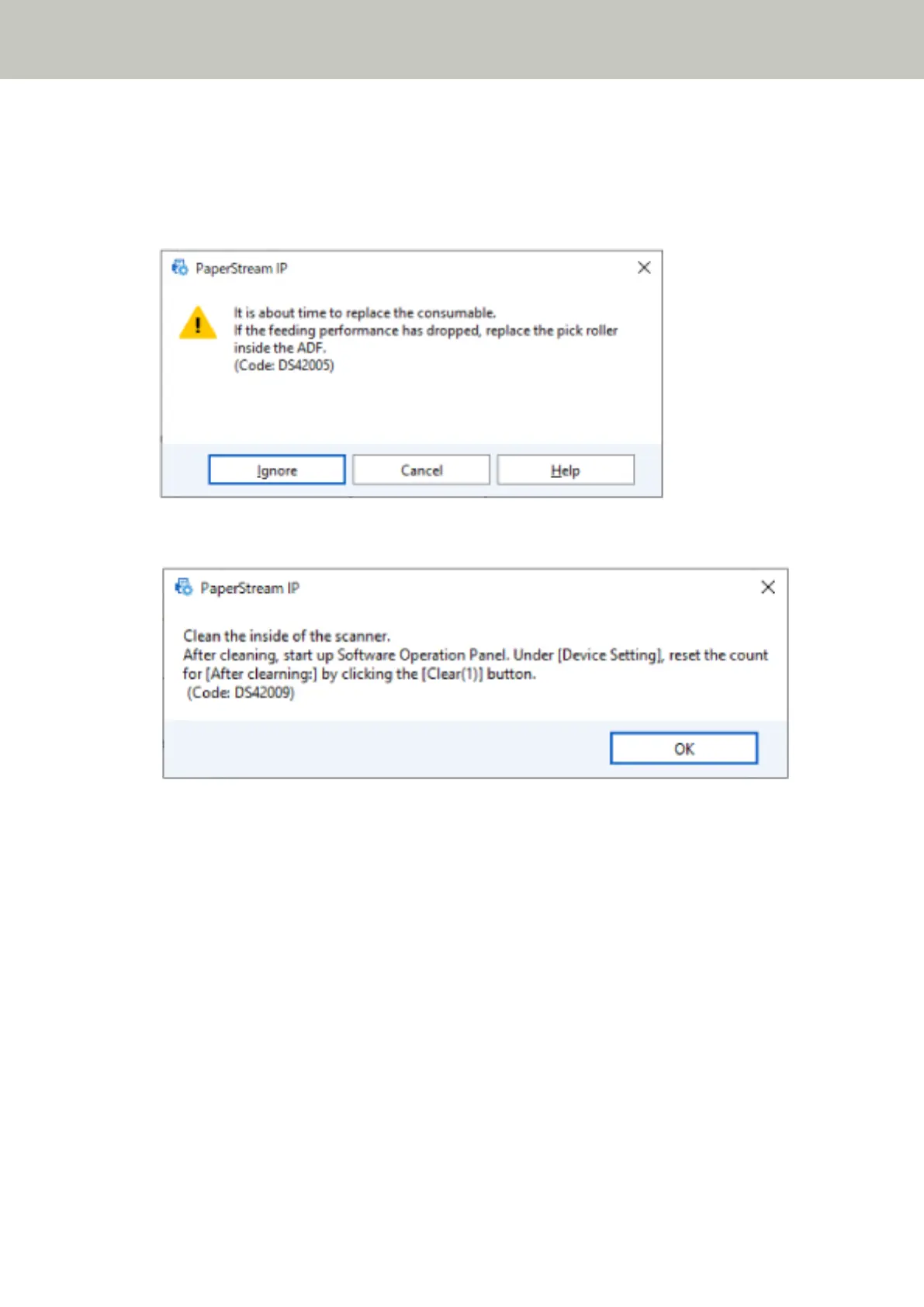 If you click the [Ignore] button, the message disappears and the scan can be continued. However, it is