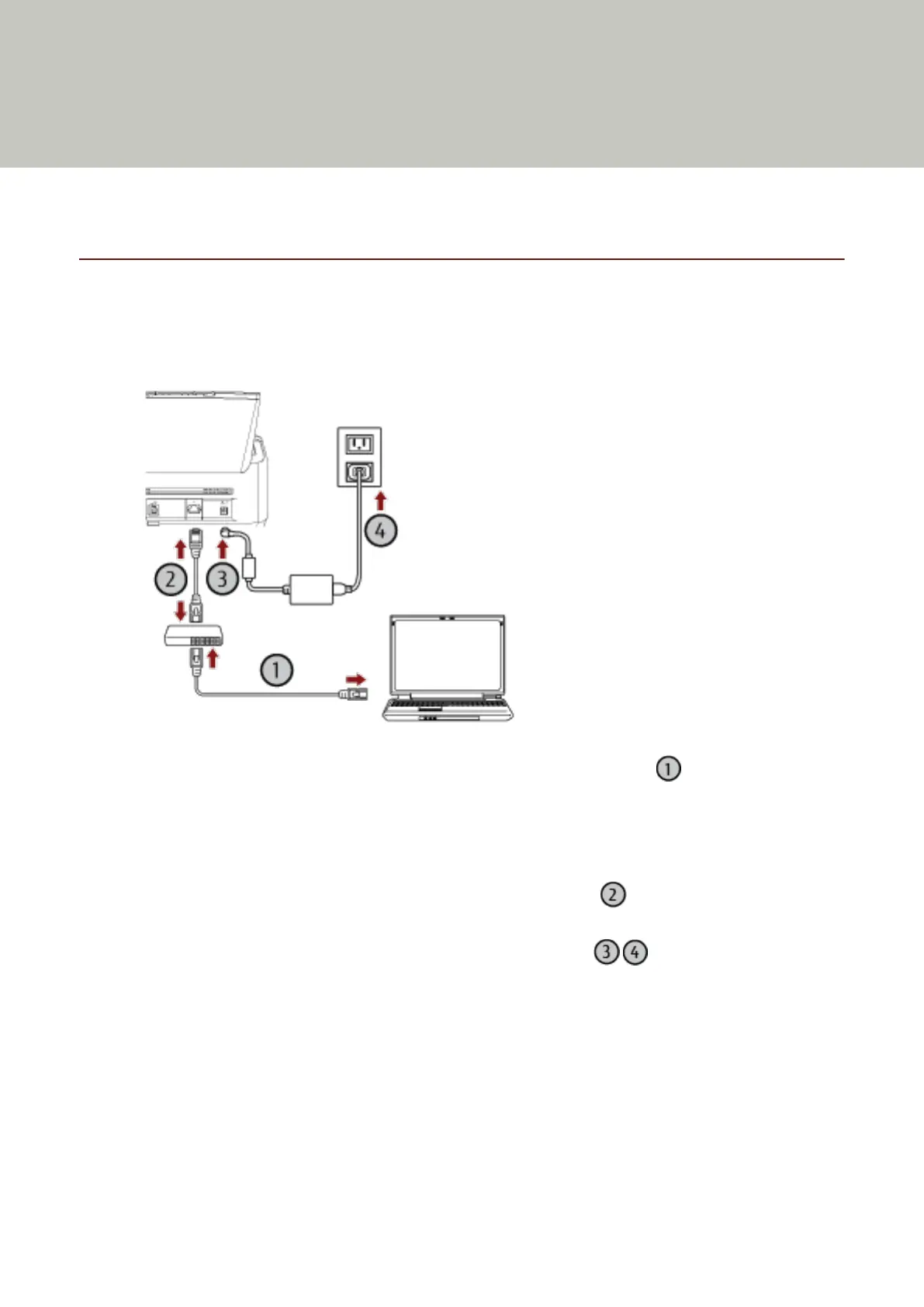 c Connect the power cable to the scanner and the AC outlet ( , ).