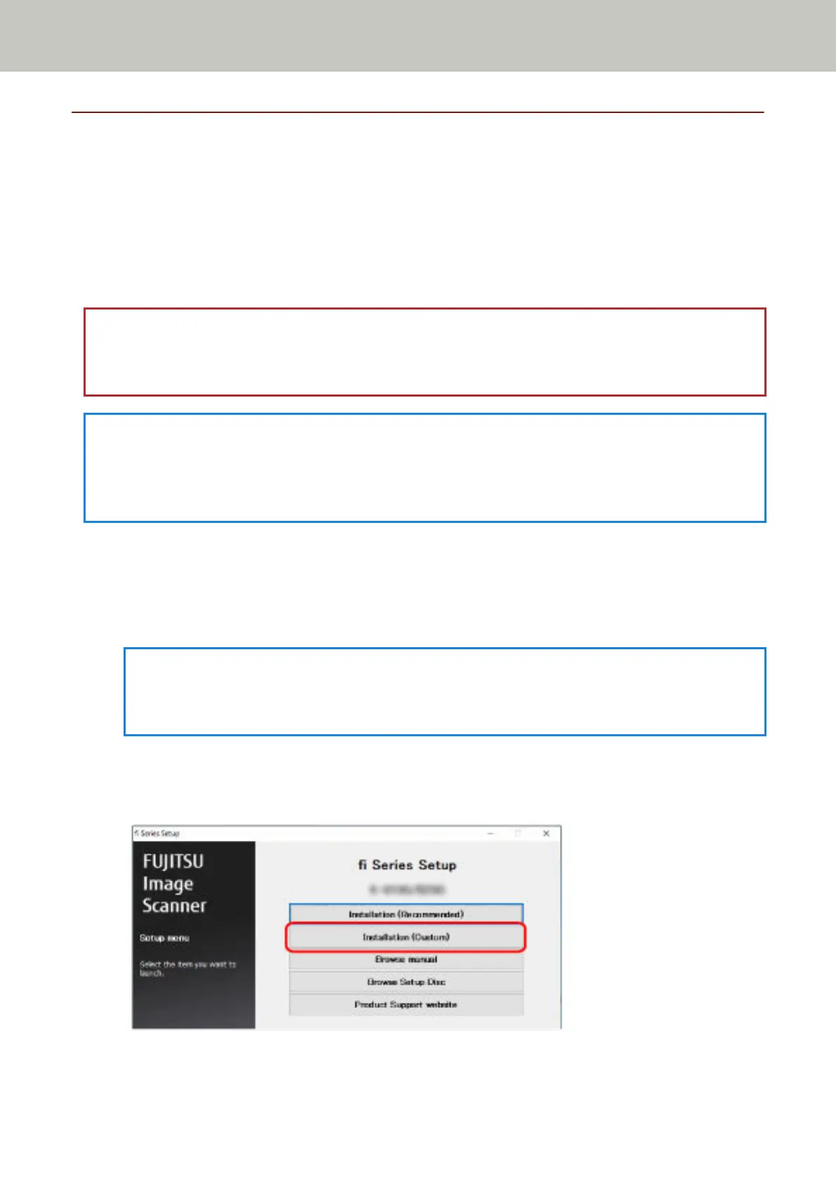 If the [fi Series Setup] window does not appear, double-click "Setup.exe" in the Setup DVD-ROM via [File