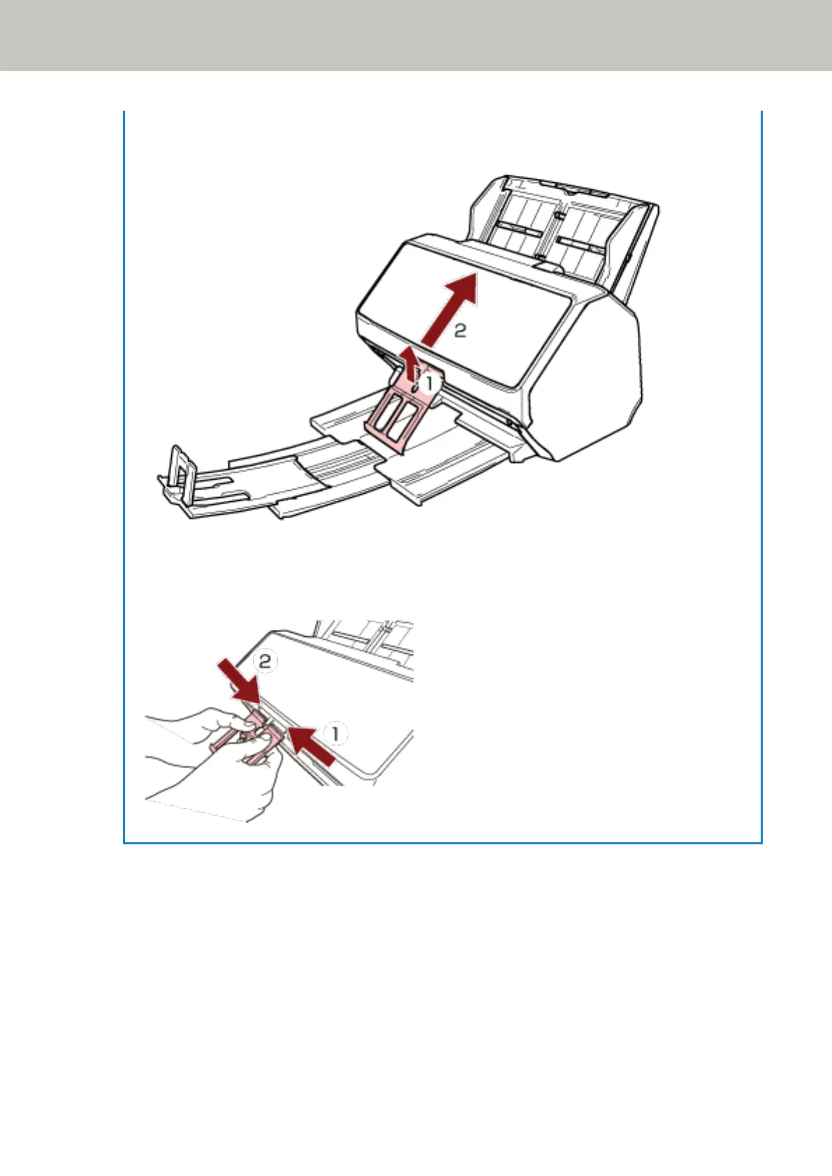 ● To return it to the original position, hold the upper part of the stack supporter, lift it in the direction of