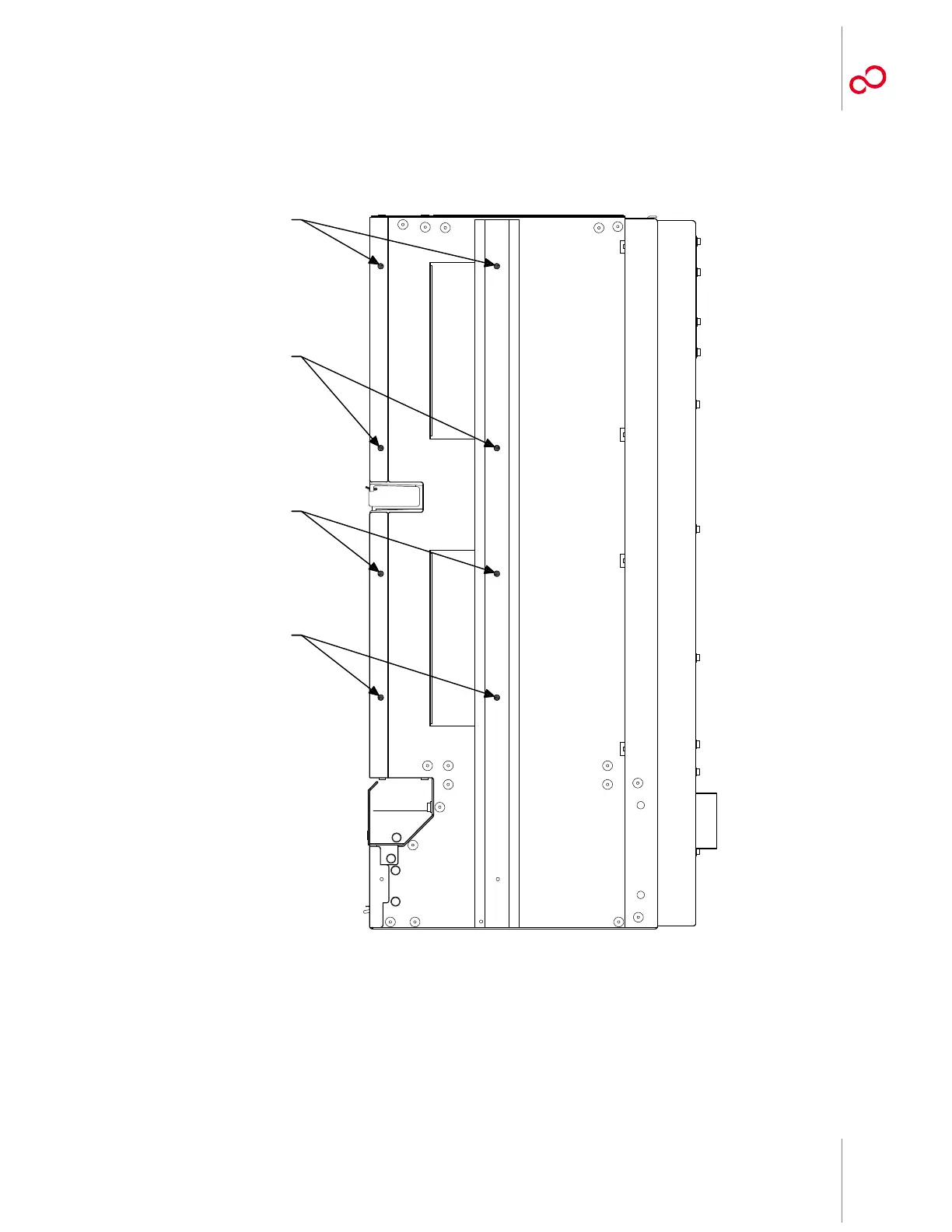 Figure 3-27: Flange Mounting Holes on Right Side of Optical/Tributary Shelf