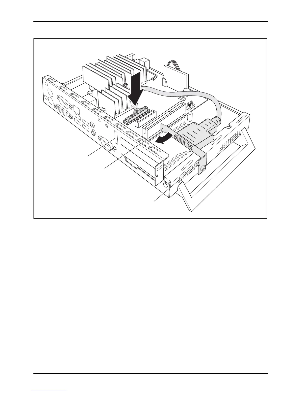 Connect the plug of the DVI adapter cable to t he mainboard (1).