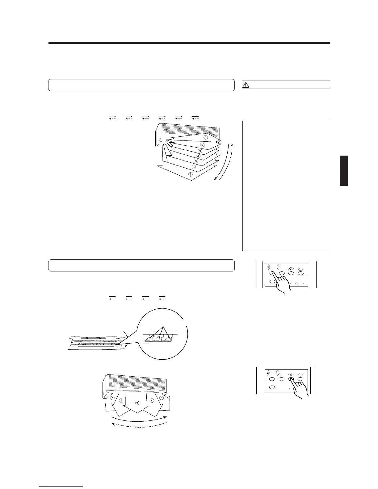 button. Horizontal (right-left) direction of airflow is adjusted by pressing the remote control unit’s AIR FLOW DIRECTION