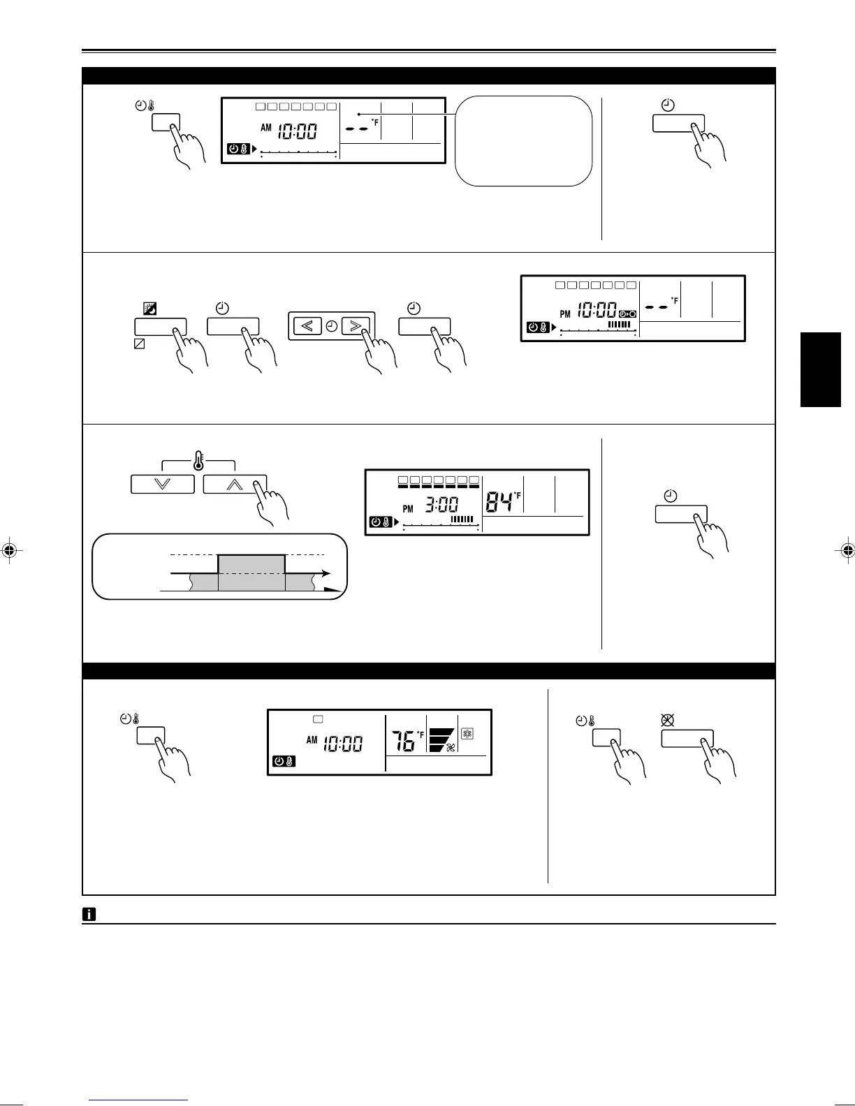 (3) The SET BACK timer can be used together with the ON, OFF, and weekly timer functions.