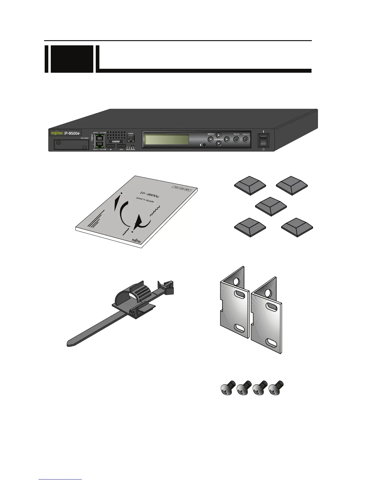 Holder of power supply cable: 1 pc Mounting kit on 19” rack: 2 pcs