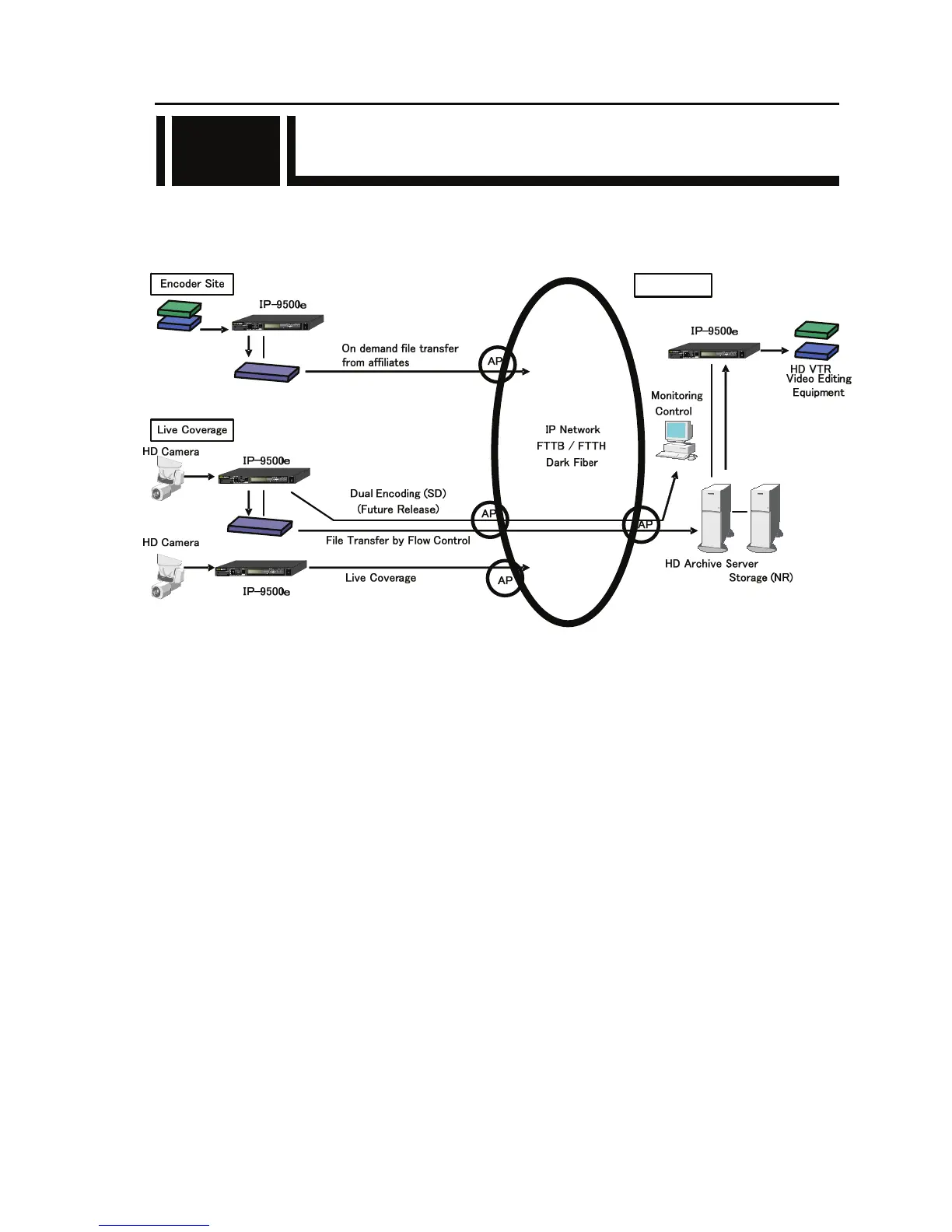 Examples (system configuration) of use of IP-9500e are shown below.