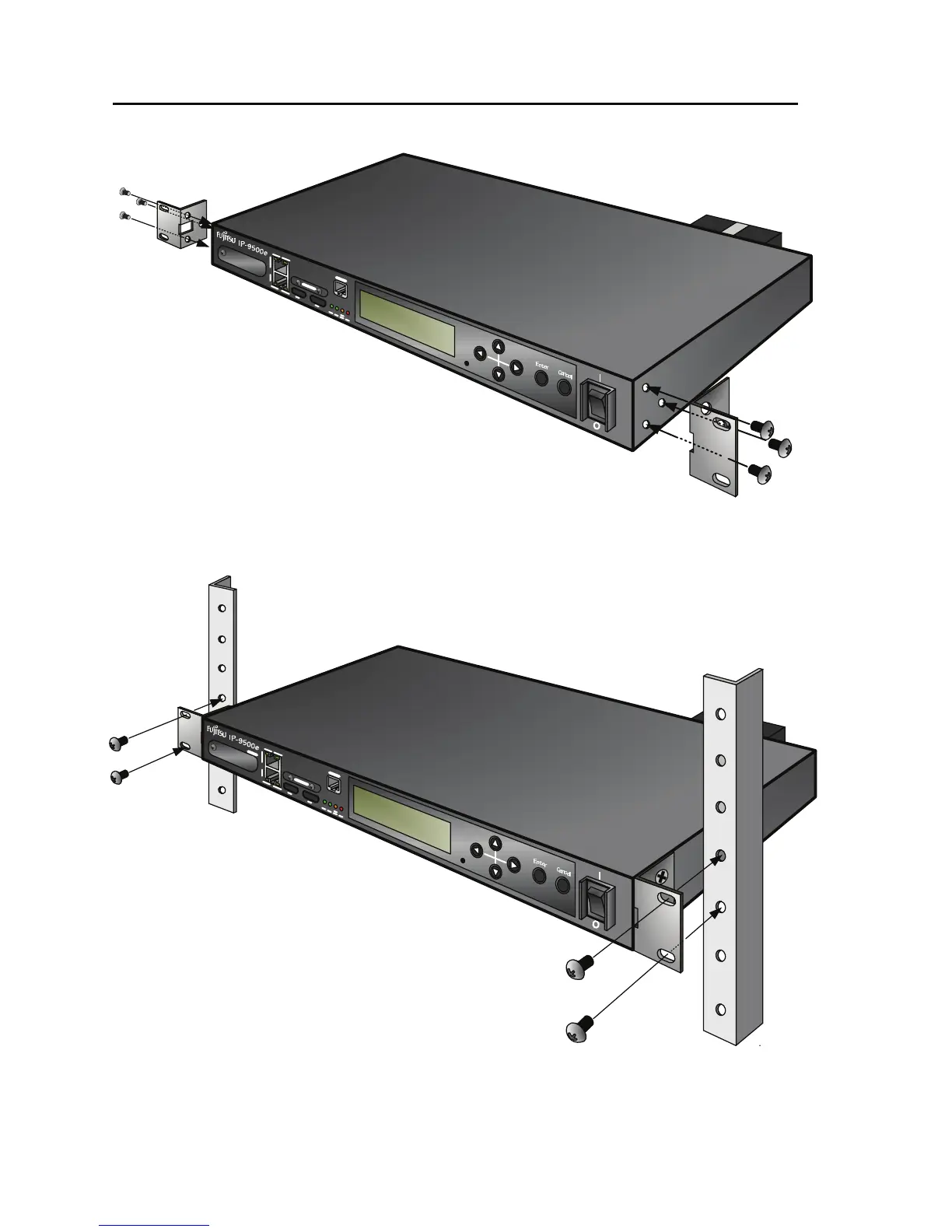 (4) Install IP-9500e on 19” rack using the four pan screws (M5) attached.
