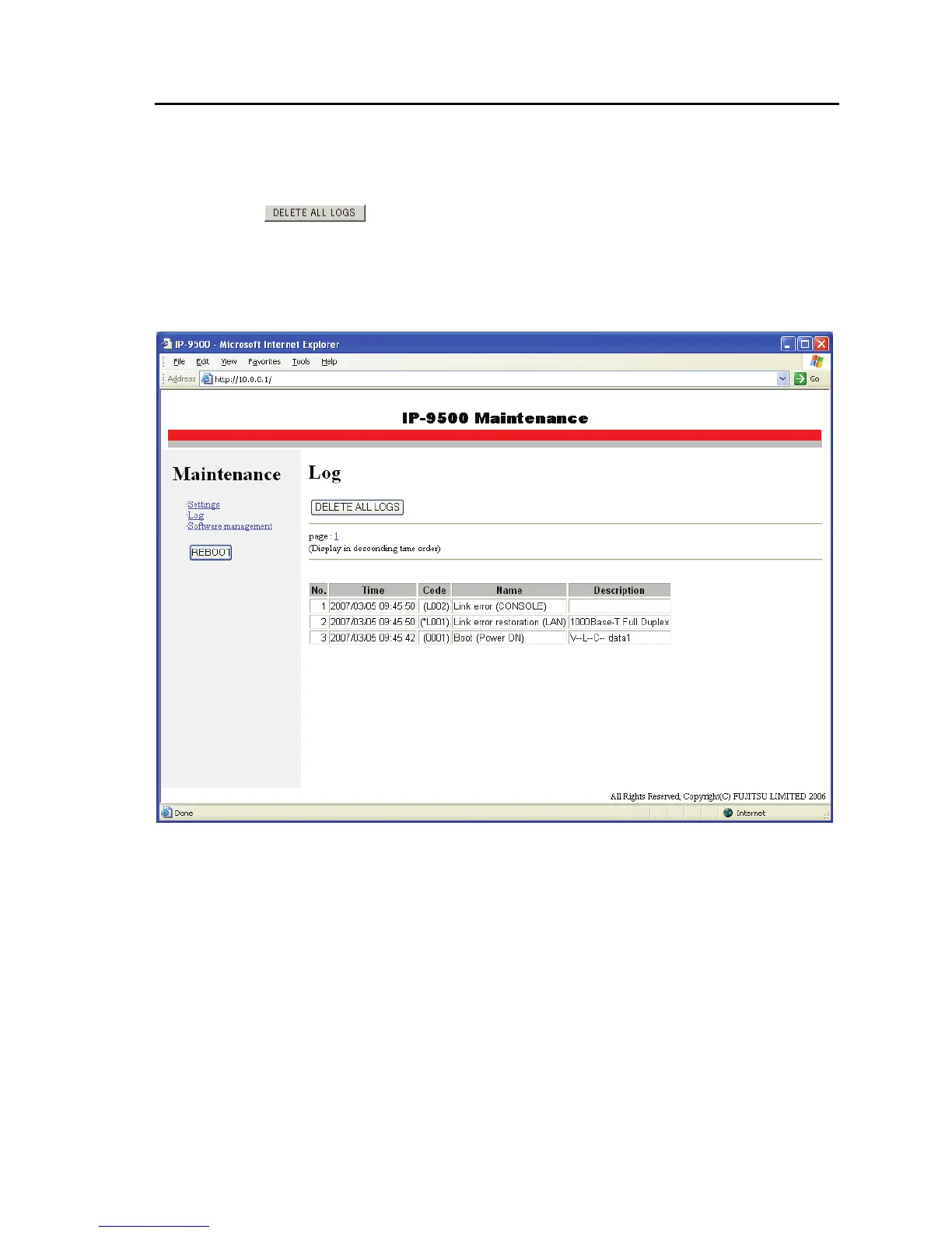 Click Log in the left frame of the browser to display the log information page in the right frame of