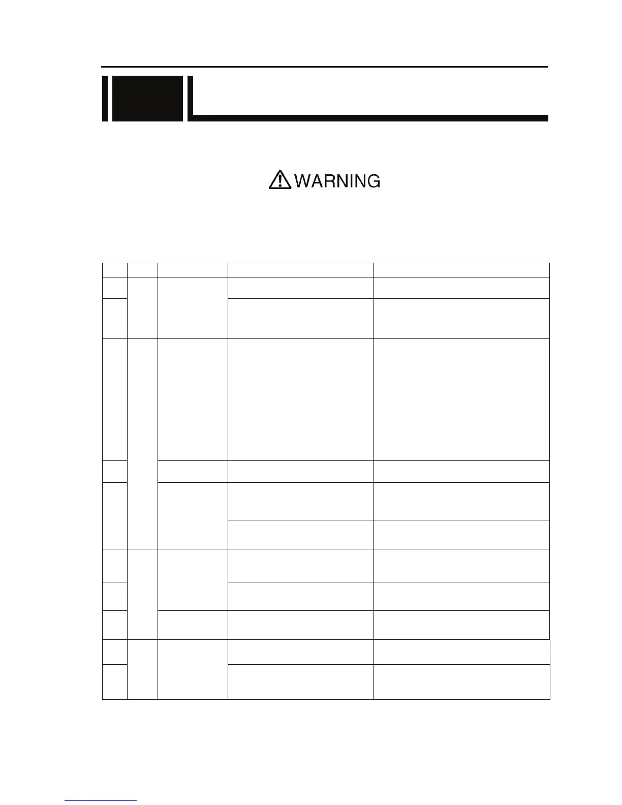 Table 5.1 Problem descriptions and recommended actions