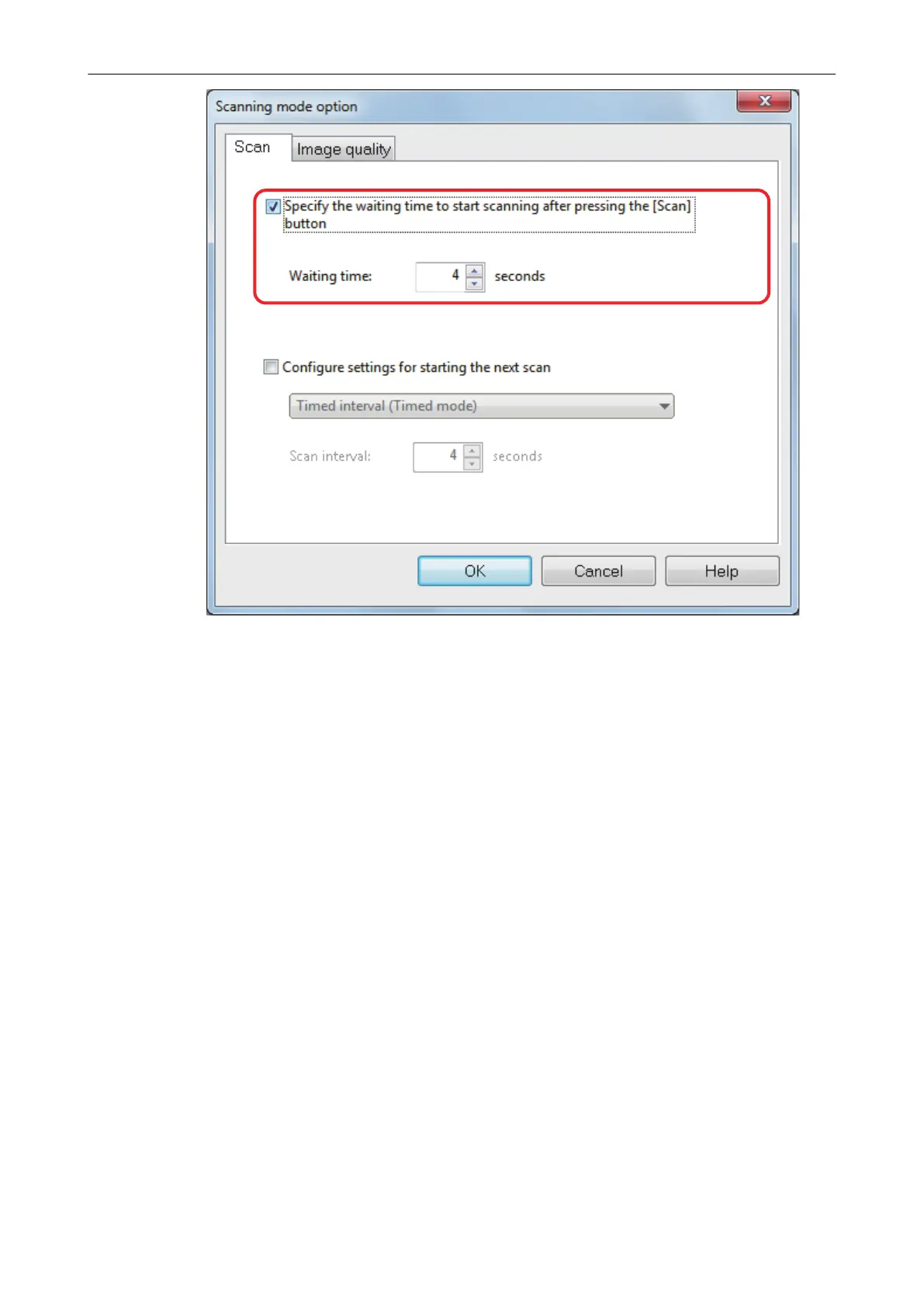 1. Select the [Configure settings for starting the next scan] checkbox, and then select