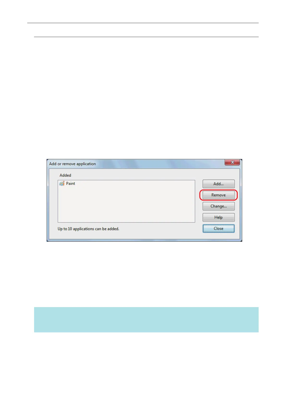 Remove] button in the [Application] tab displays the [Add or remove application] window.