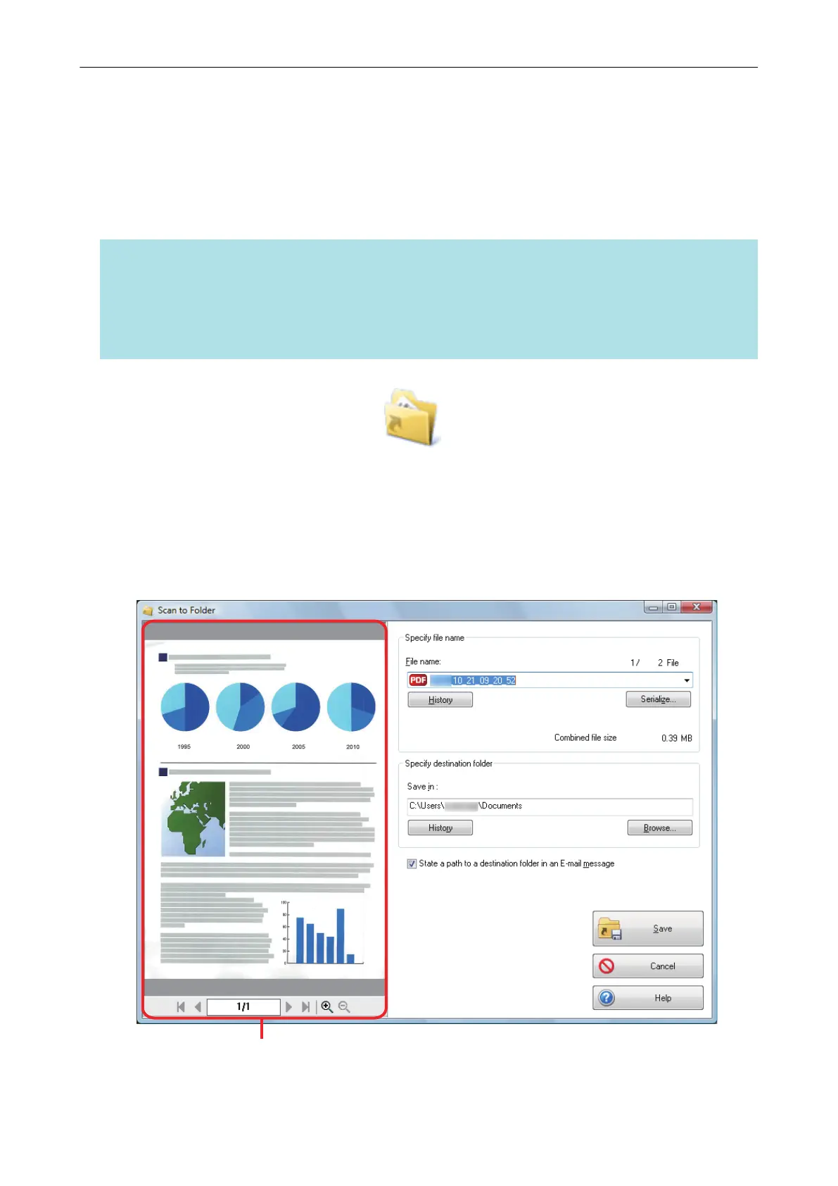 For details about the [Scan to Folder] window, refer to the ScanSnap Manager Help.