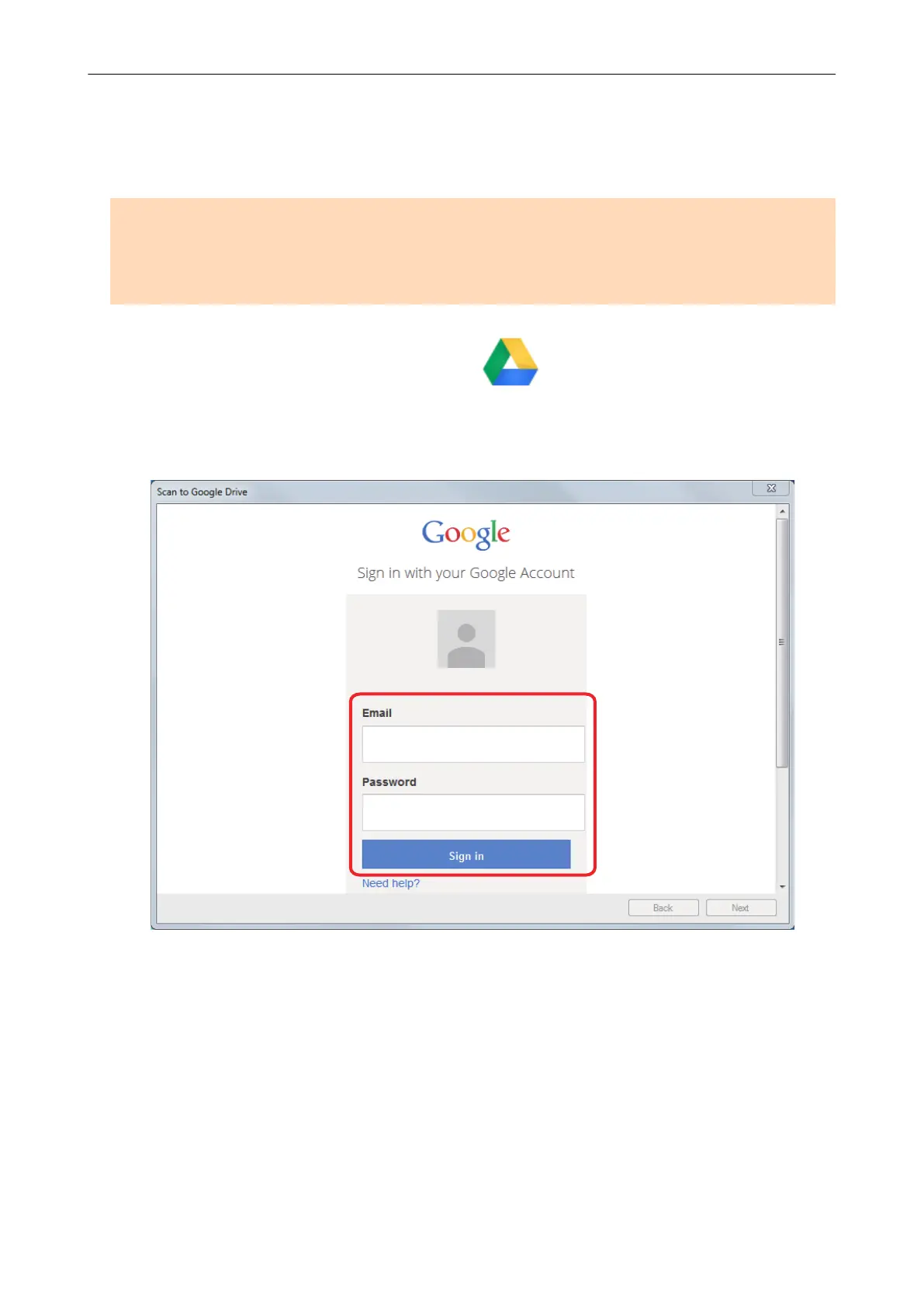 This section explains how to save the scanned image as a PDF file to Google Drive.
