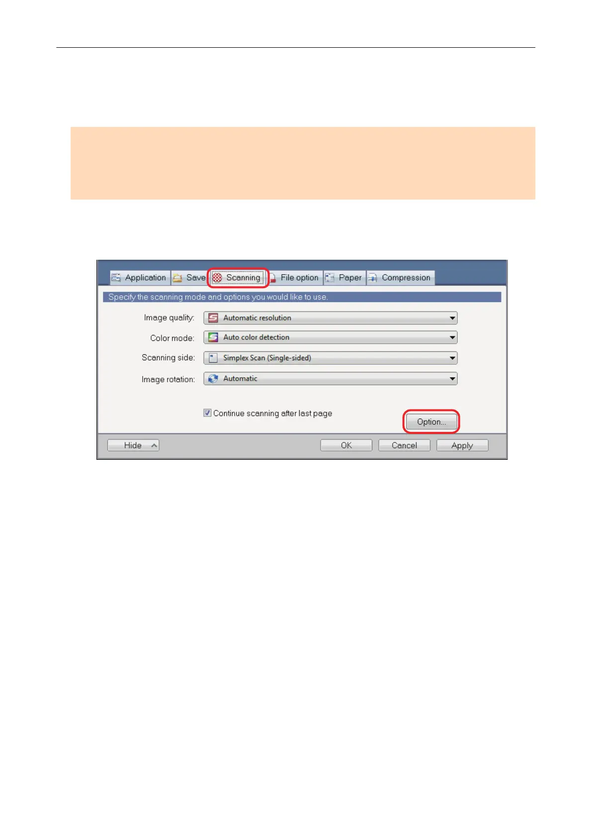 a The [Scanning mode option] window appears.