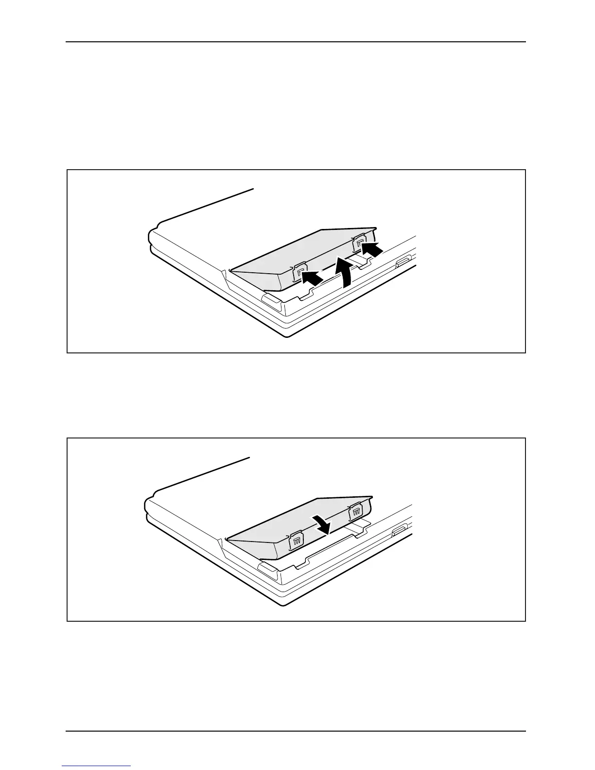 ► Press the two unlocking lugs (1), hold them down and lift the battery slightly.