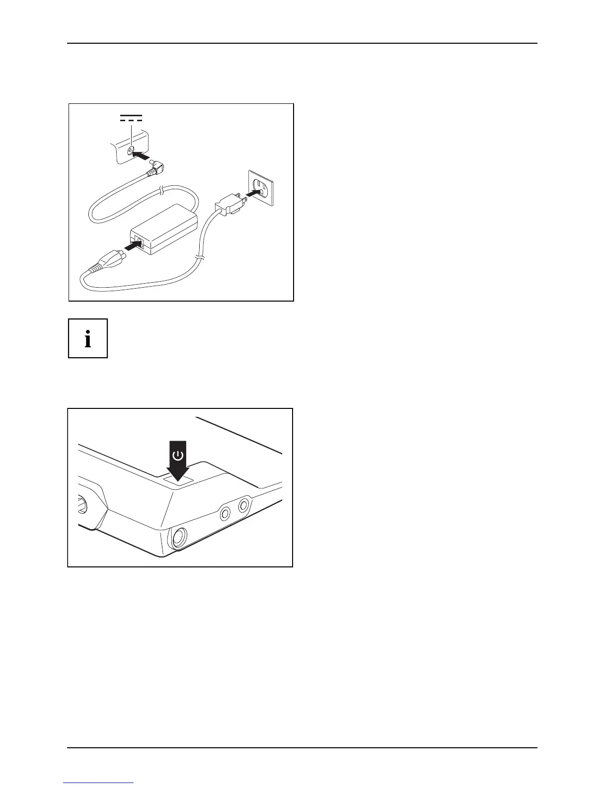 ► Plug the AC cable into the power outlet (2).