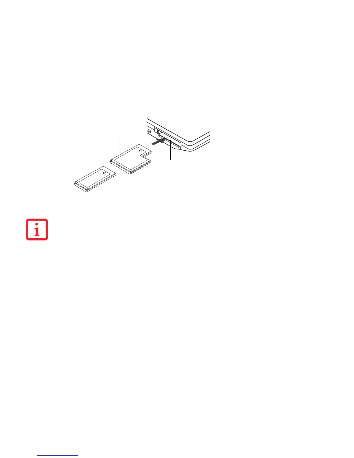 3 Enfoncez la carte ExpressCard dans la fente, étiquette vers le haut. Si vous insérez une carte de 34 mm, alignez-