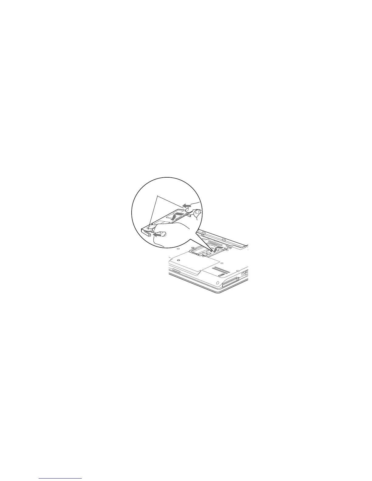 3 En maintenant les ergots écartés, retirez la barrette en la tirant vers à l’extérieur de l’ordinateur. Rangez le module