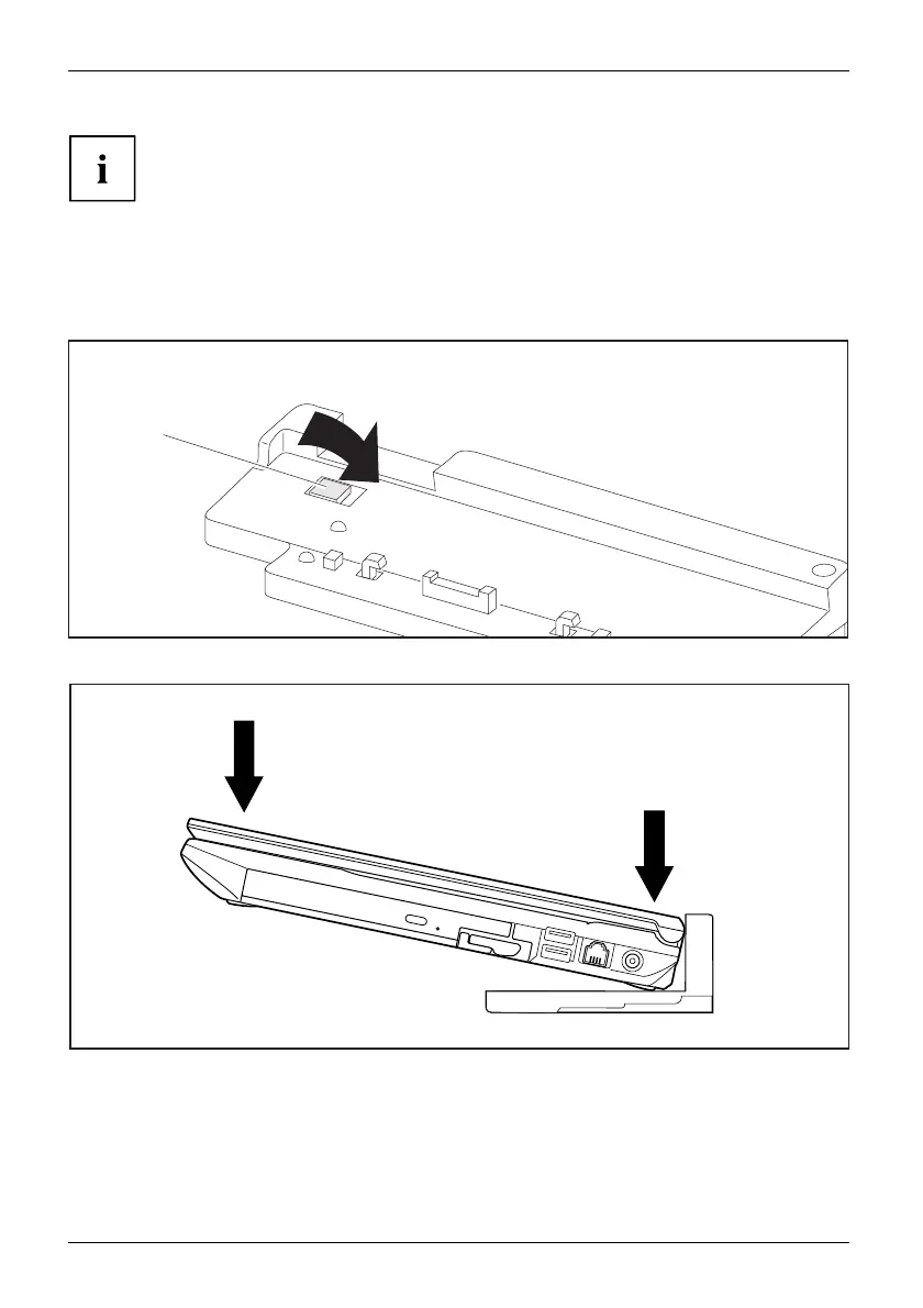 ► Push the notebook onto the Port Replicator in the dire ction of the arrow (2) until it engages.