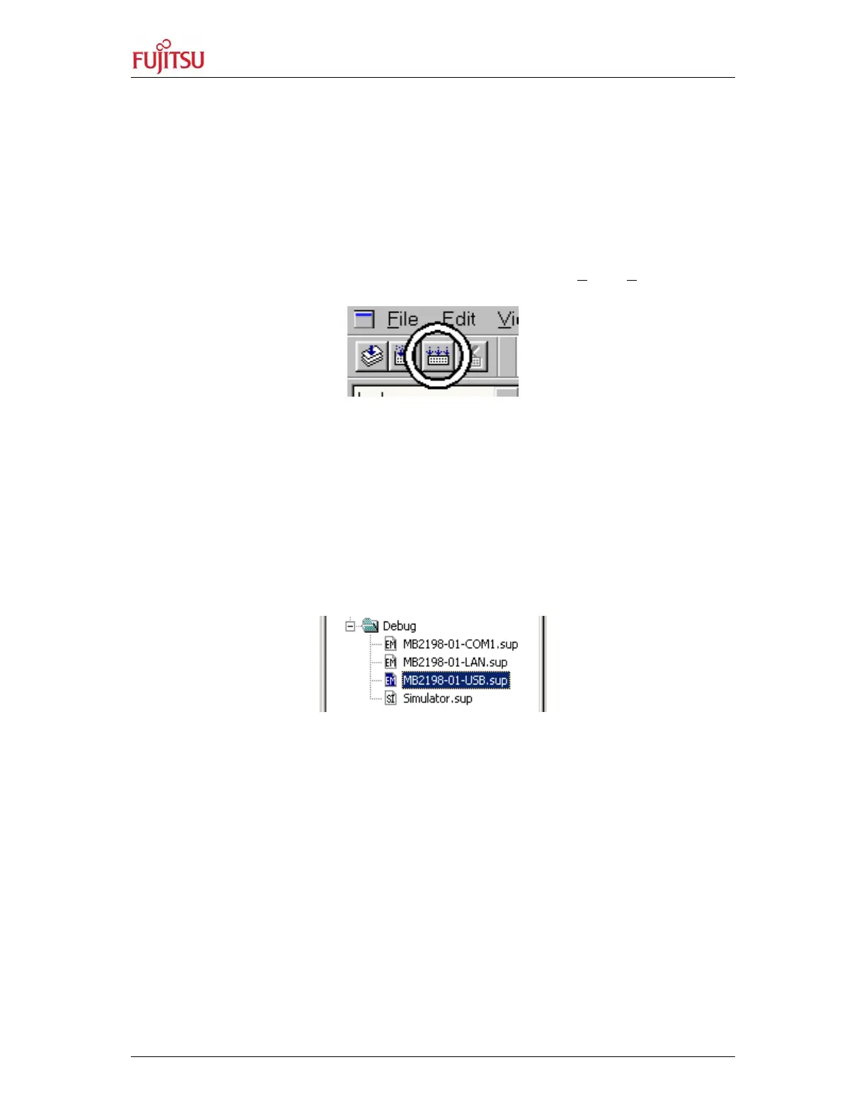 window (*.sup-files), your PC will connect to the MB2198-01 Emulator and the Softune