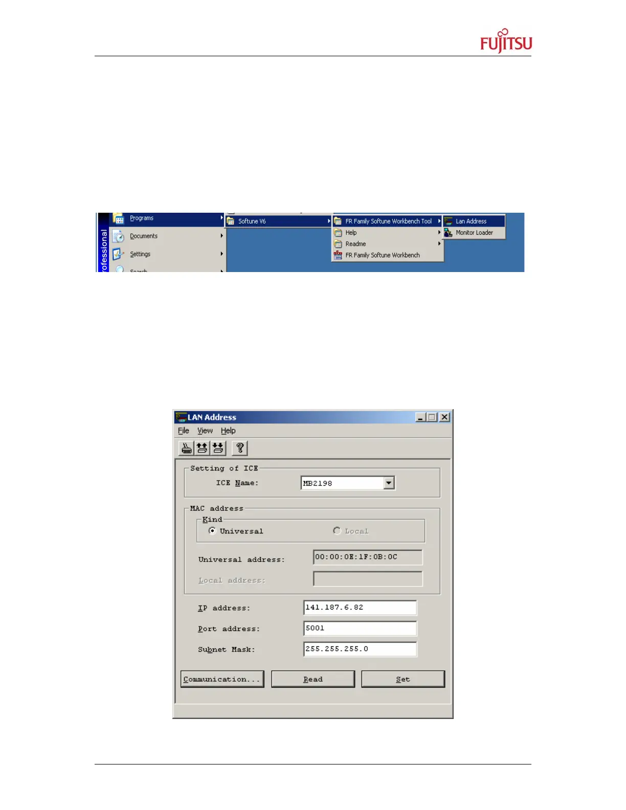 3 Start the „LAN Address“ Program in the Softune Workbench Folder