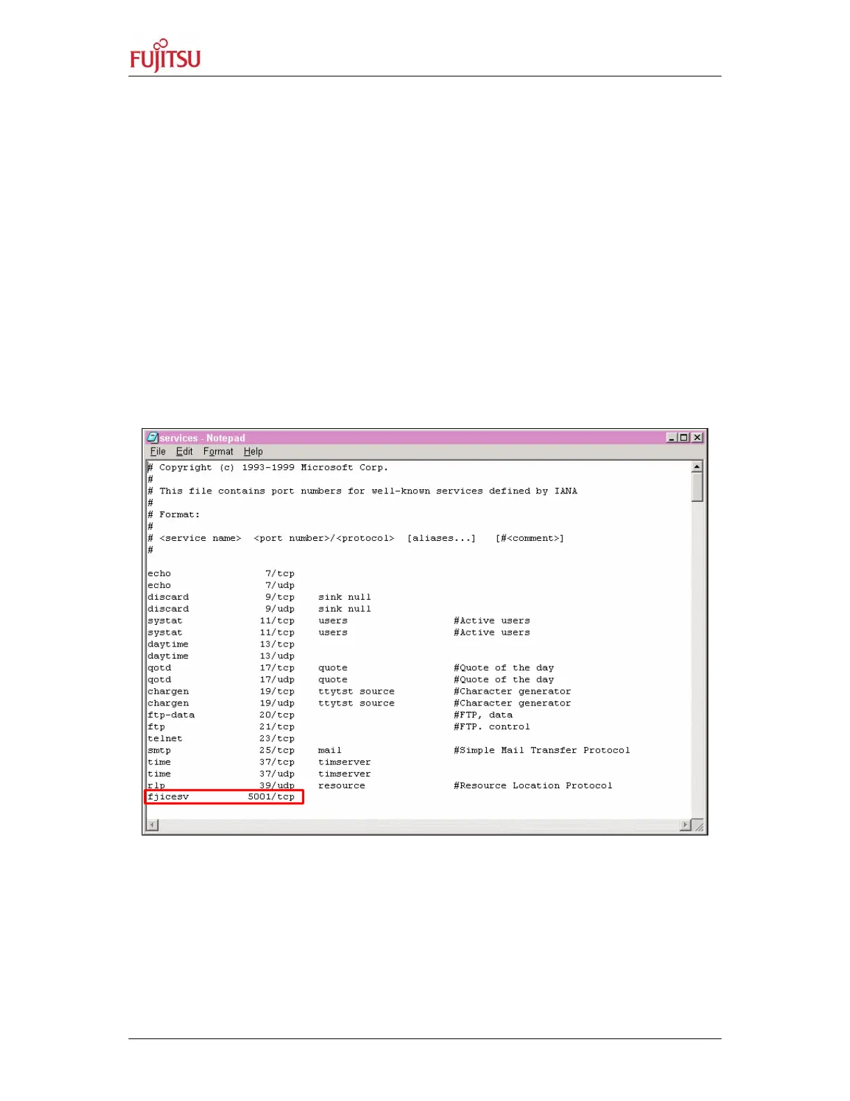 (Note: if 5001/tcp is already contained in the file services, use an unused