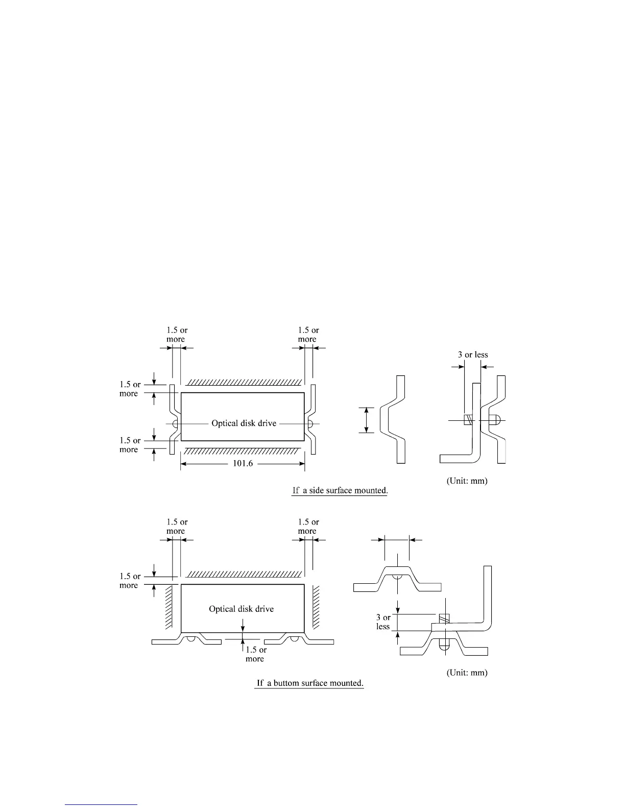 deformation of the mounting fittings provided and the optical disk drive's panel should not be