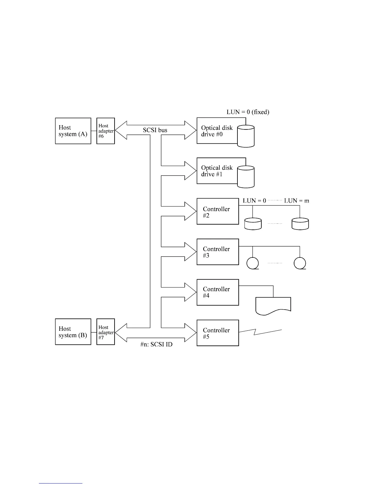 An optical disk drive connected to the system SCSI bus always operates as a target. Figure 1.5 is