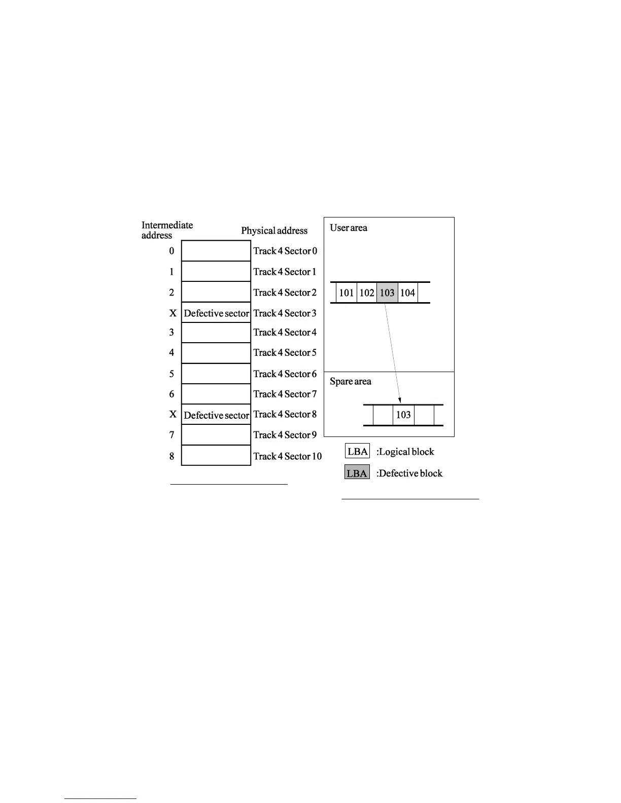 management scheme as follows: Defective sectors found during surface certification are handled
