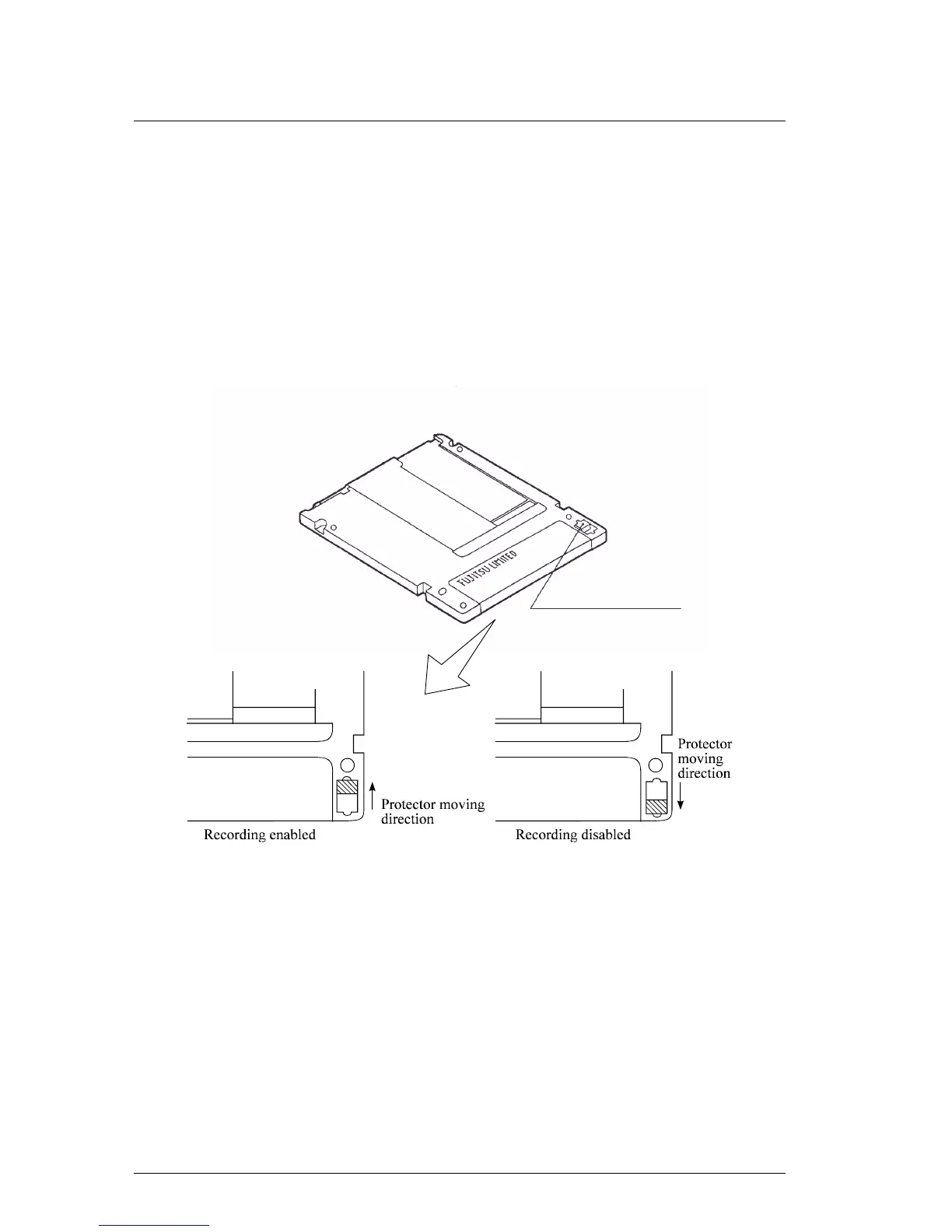 Figure 5.5 shows the write protect tab location on the optical disk cartridge and the
