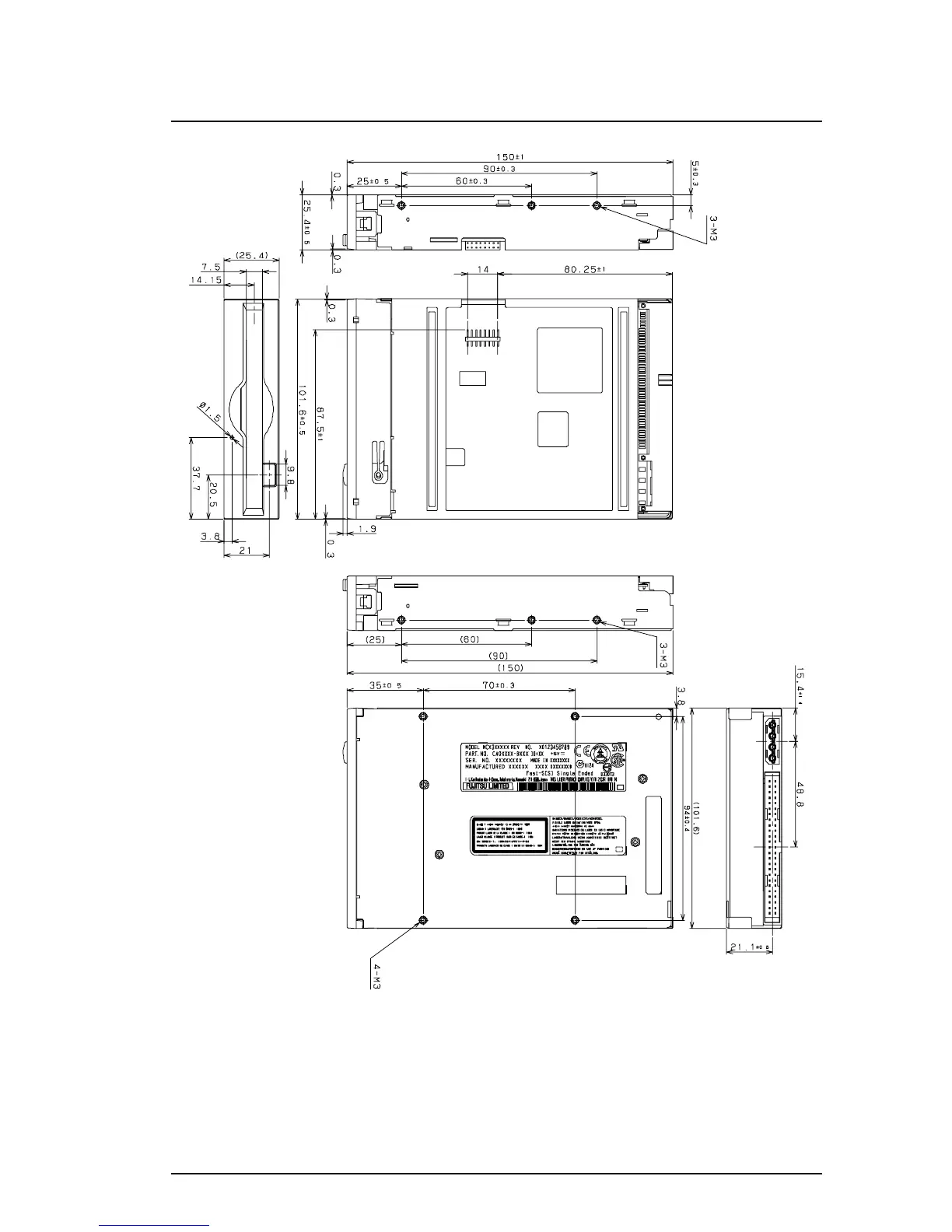 Fujitsu MCM3064SS - Figure 3.2 Outer Dimensions