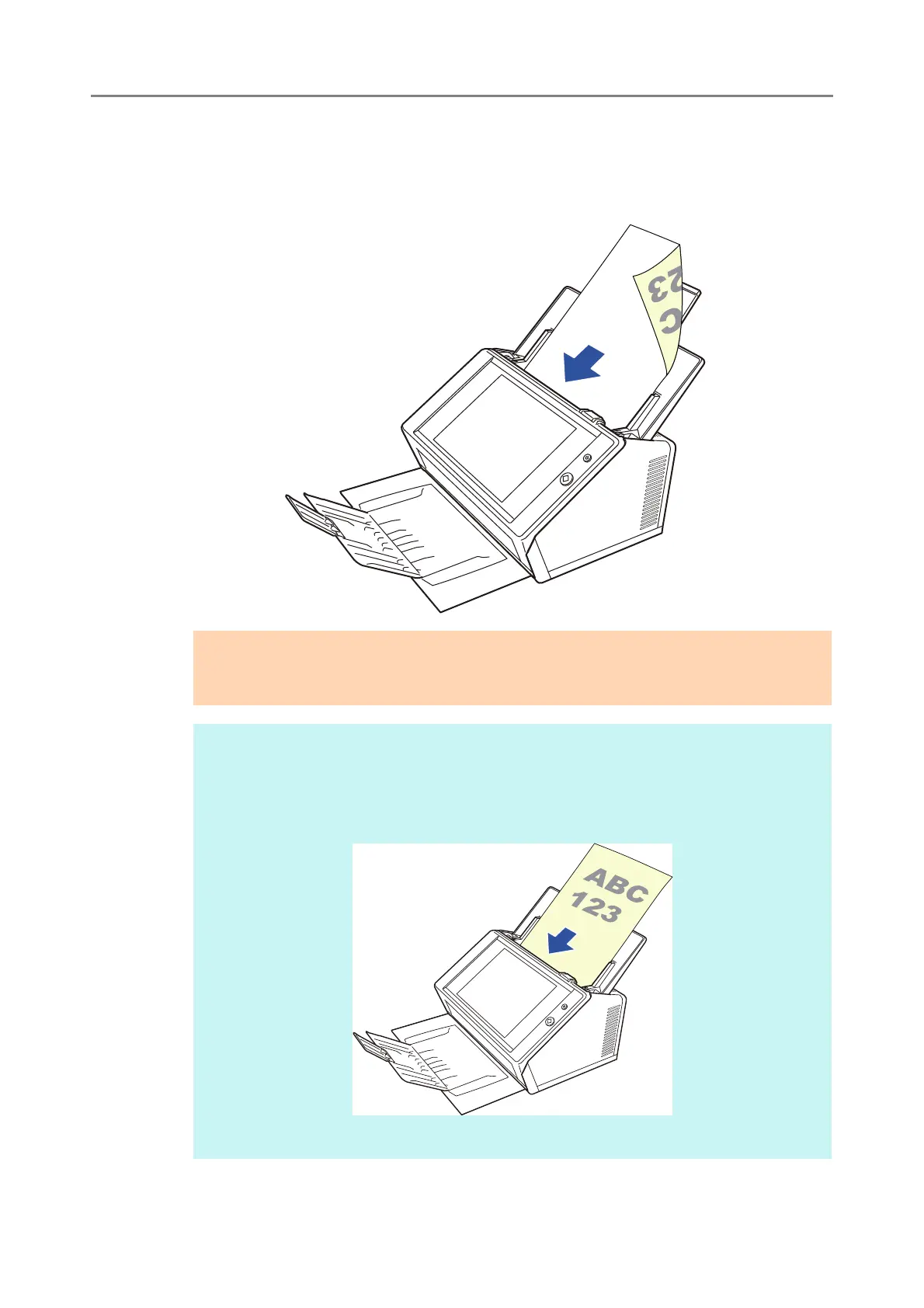 document front side up, with the bottom of the document entering the scanner first.