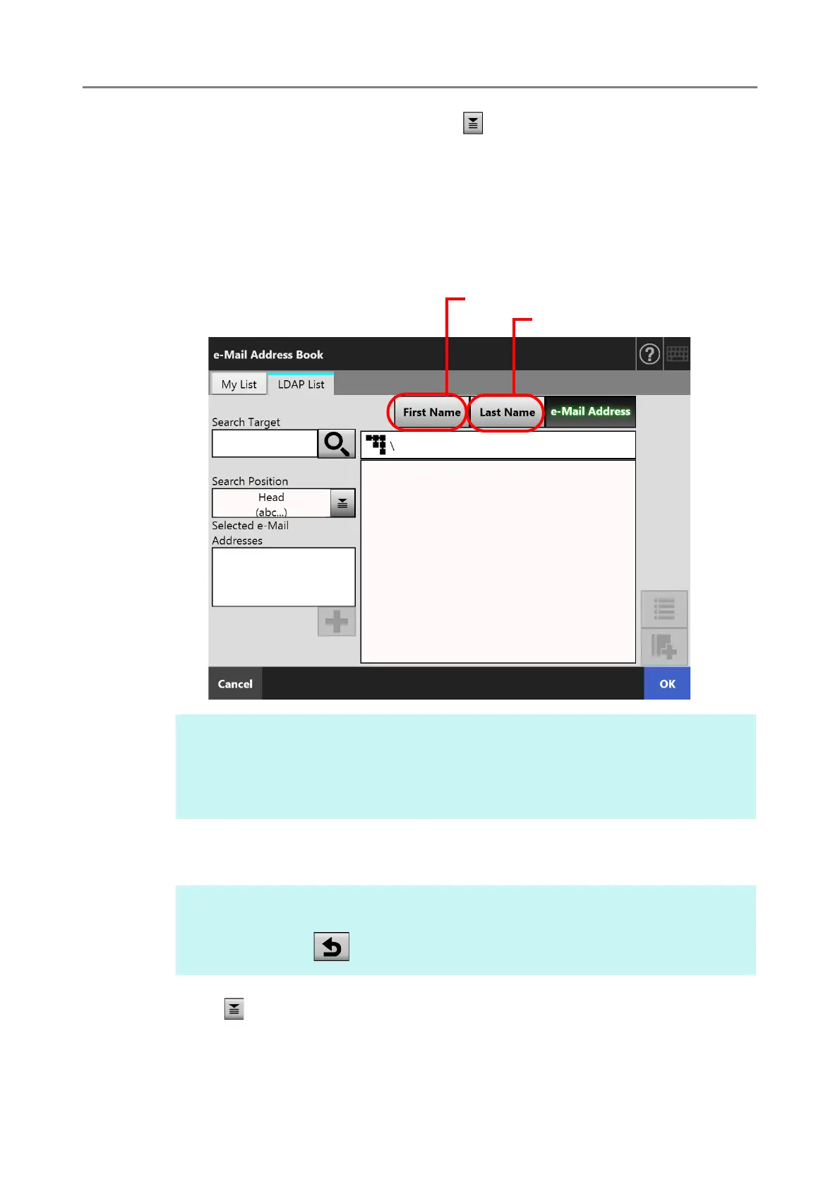 1. On the [Send e-Mail] window, press in the e-mail address field.