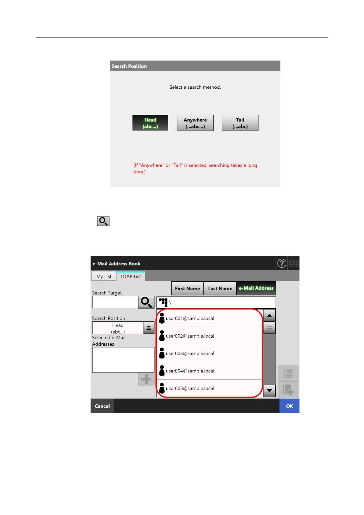 The window returns to the [e-Mail Address Book] LDAP List. The selected