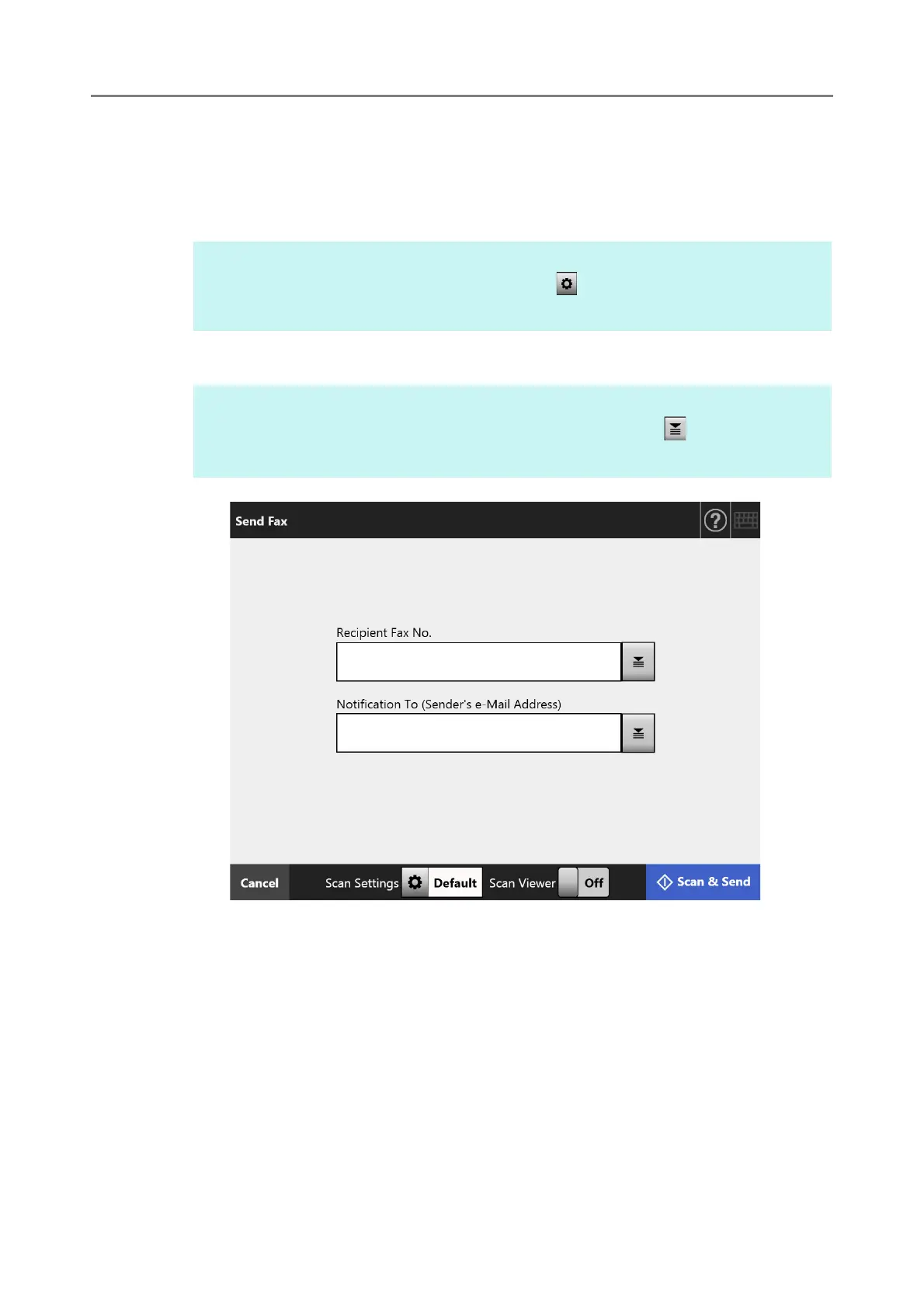 Fax numbers can be selected from the fax number list by pressing . For details, refer