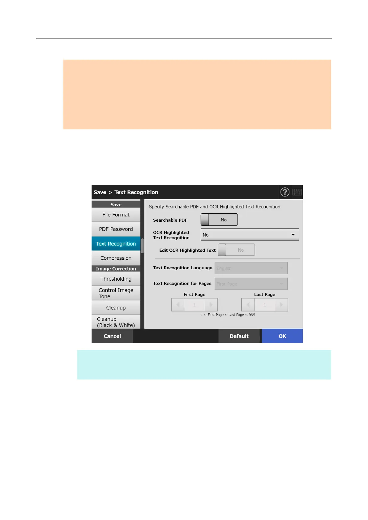 1. Select [Text Recognition] under [Save] on the scan settings window.