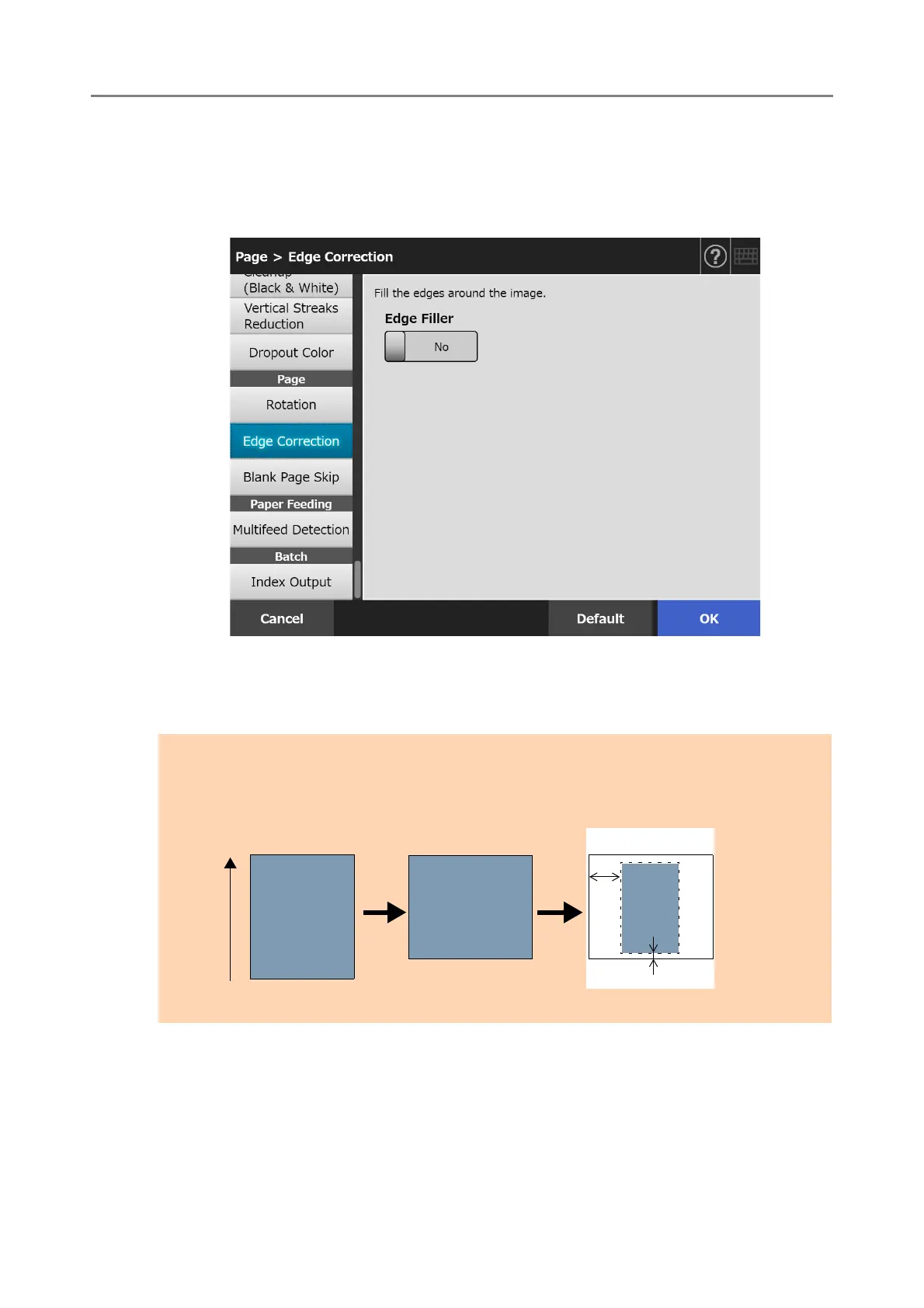 1. Select [Edge Correction] under [Page] on the scan settings window.