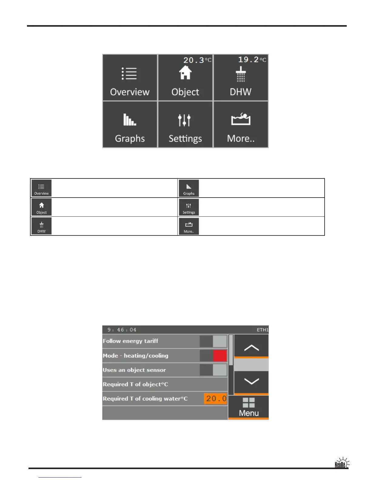 on type of variable.In section of object, DHW, graphs, settings and more are variables arrayed to vertical lists divided to parties.