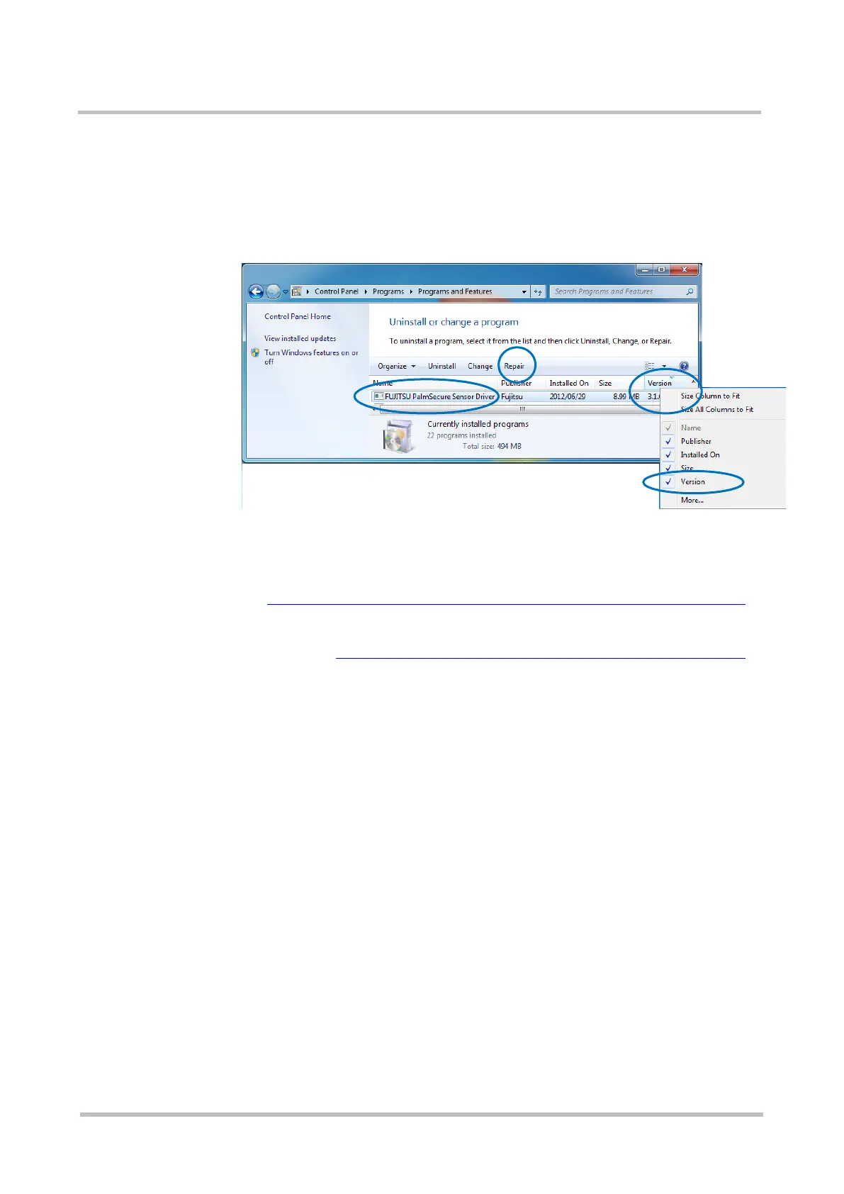 (2) Select [FUJITSU PalmSecure Sensor Driver] from the displayed