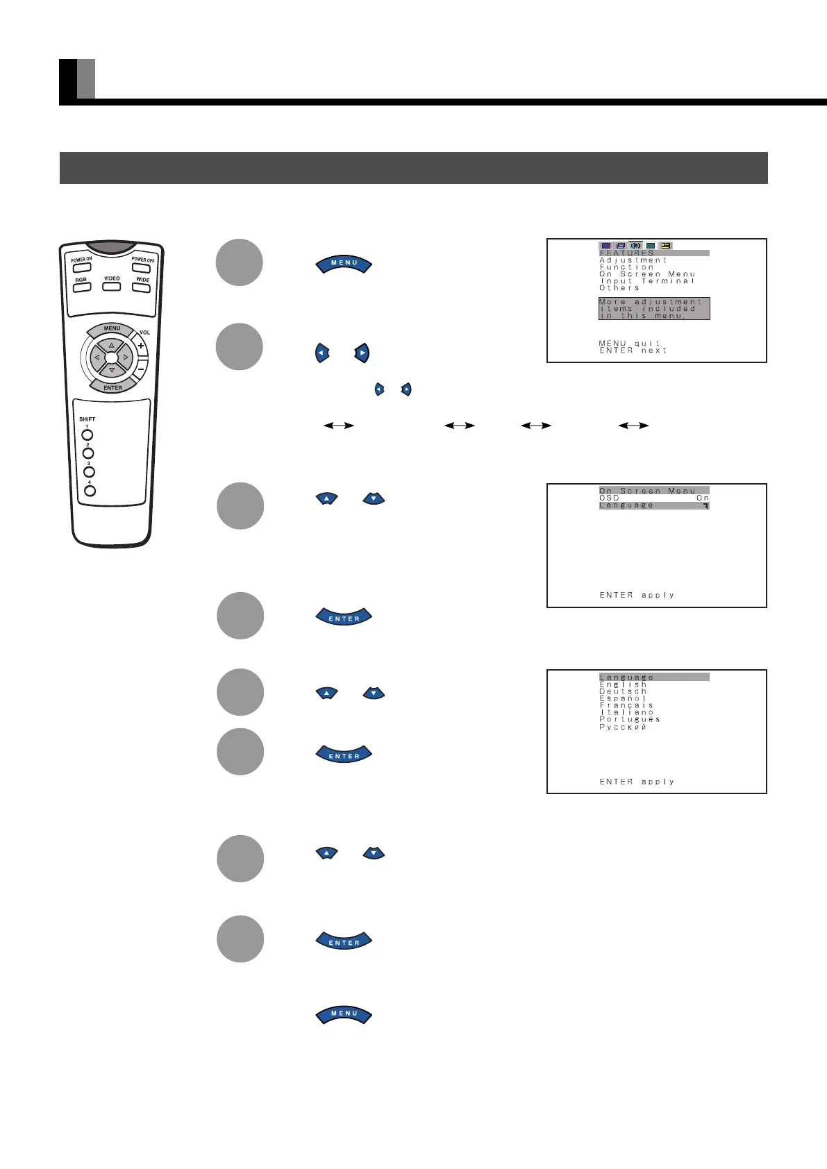 BASIC OPERATION [EX.: SELECTING LANGUAGE (Language)]