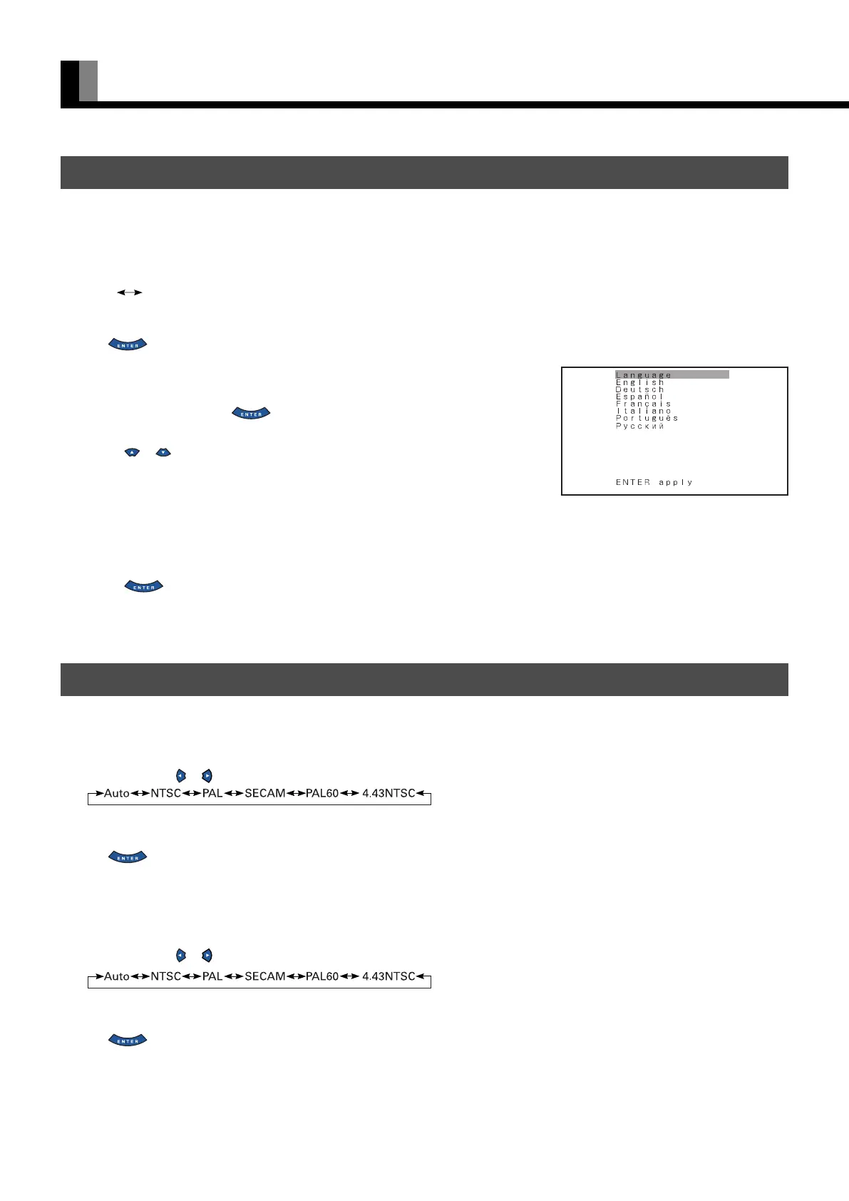 Auto: Automatically selects NTSC, PAL and SECAM.
