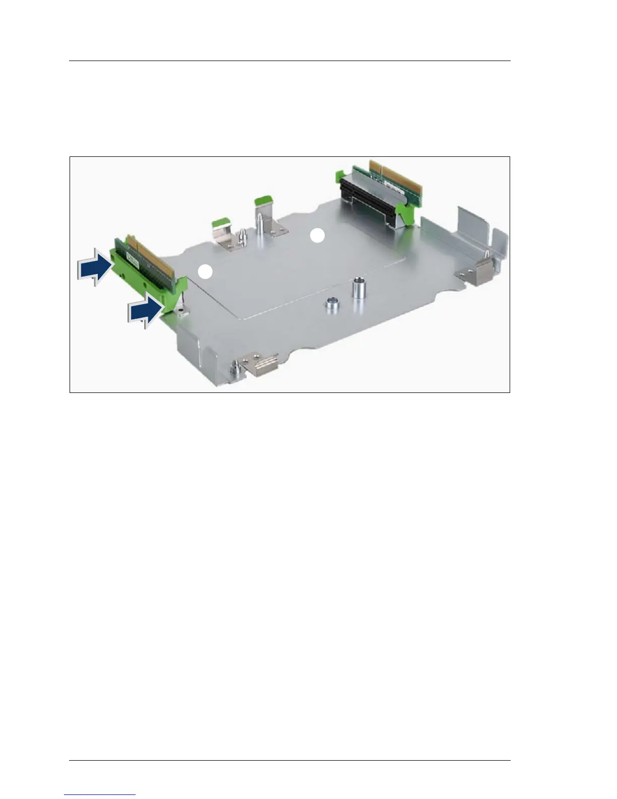 Ê Connect the riser card to the carrier. Make sure that the green clips click into