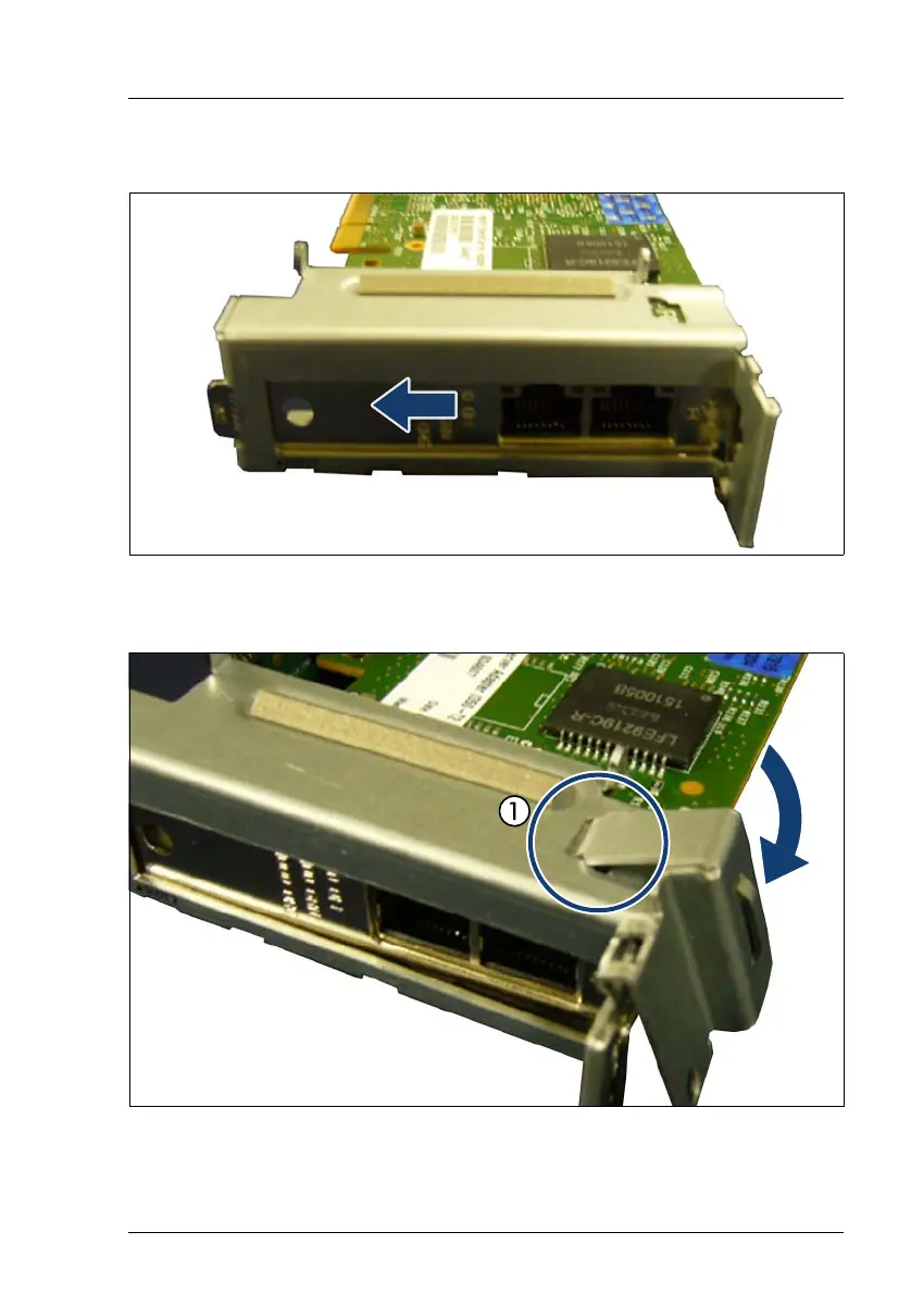 Ê Attach the gasket and insert it into the hole of the PCI cage (1).